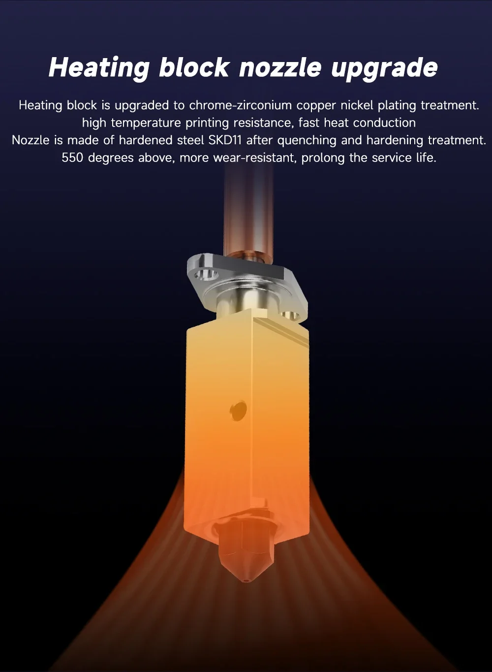 Otro extremo caliente que compré en el pasado ha chapado bloque de cobre, este parece ser de acero inoxidable. Debería funcionar bien.