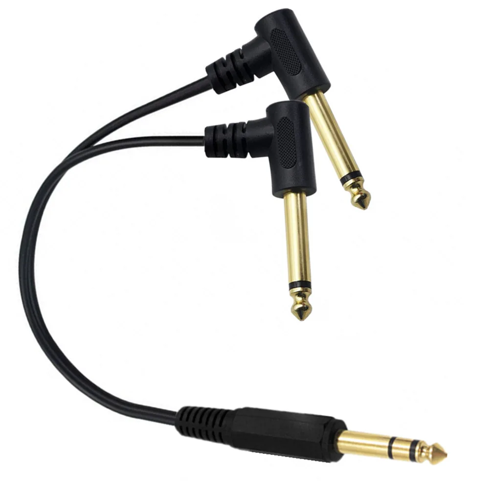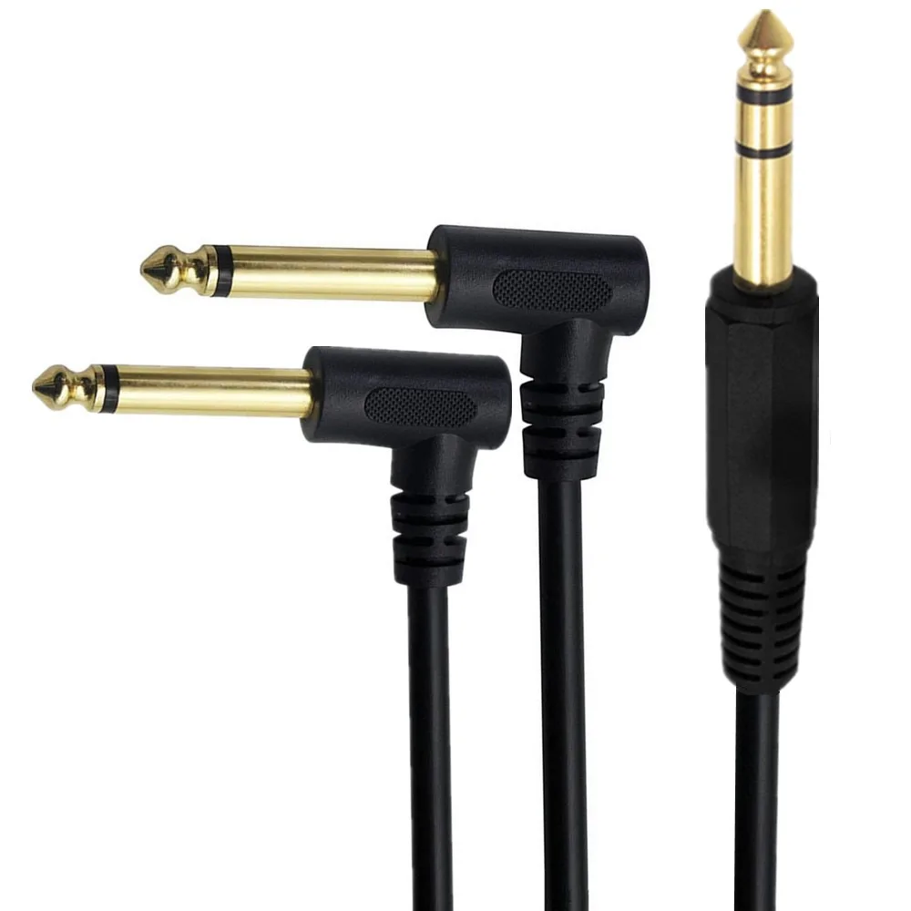 Comprar Bañado en oro 6,35 mm 14 macho TRS estéreo a doble 2 x 6,35 mm 14 macho TS Mono 90 grados ángulo recto Y cable de audio divisor 0,3 m/1,8 m