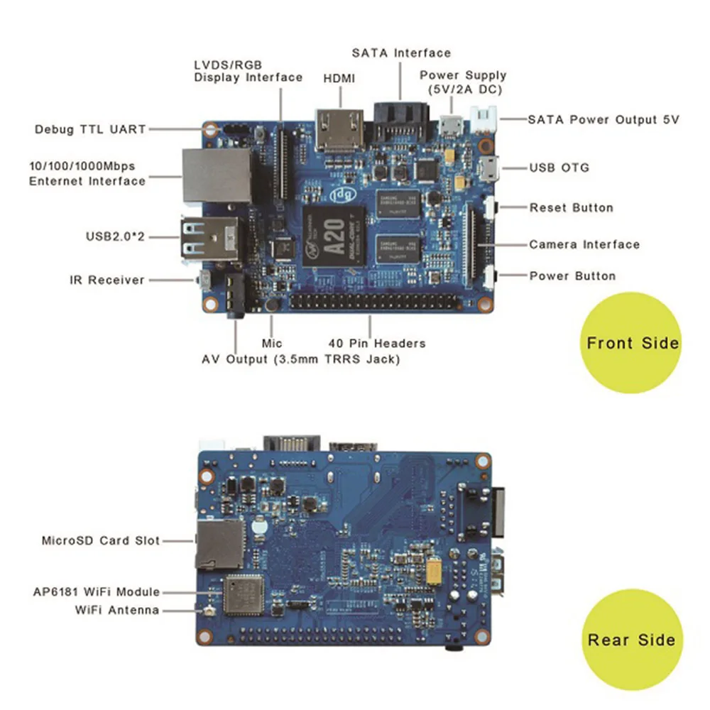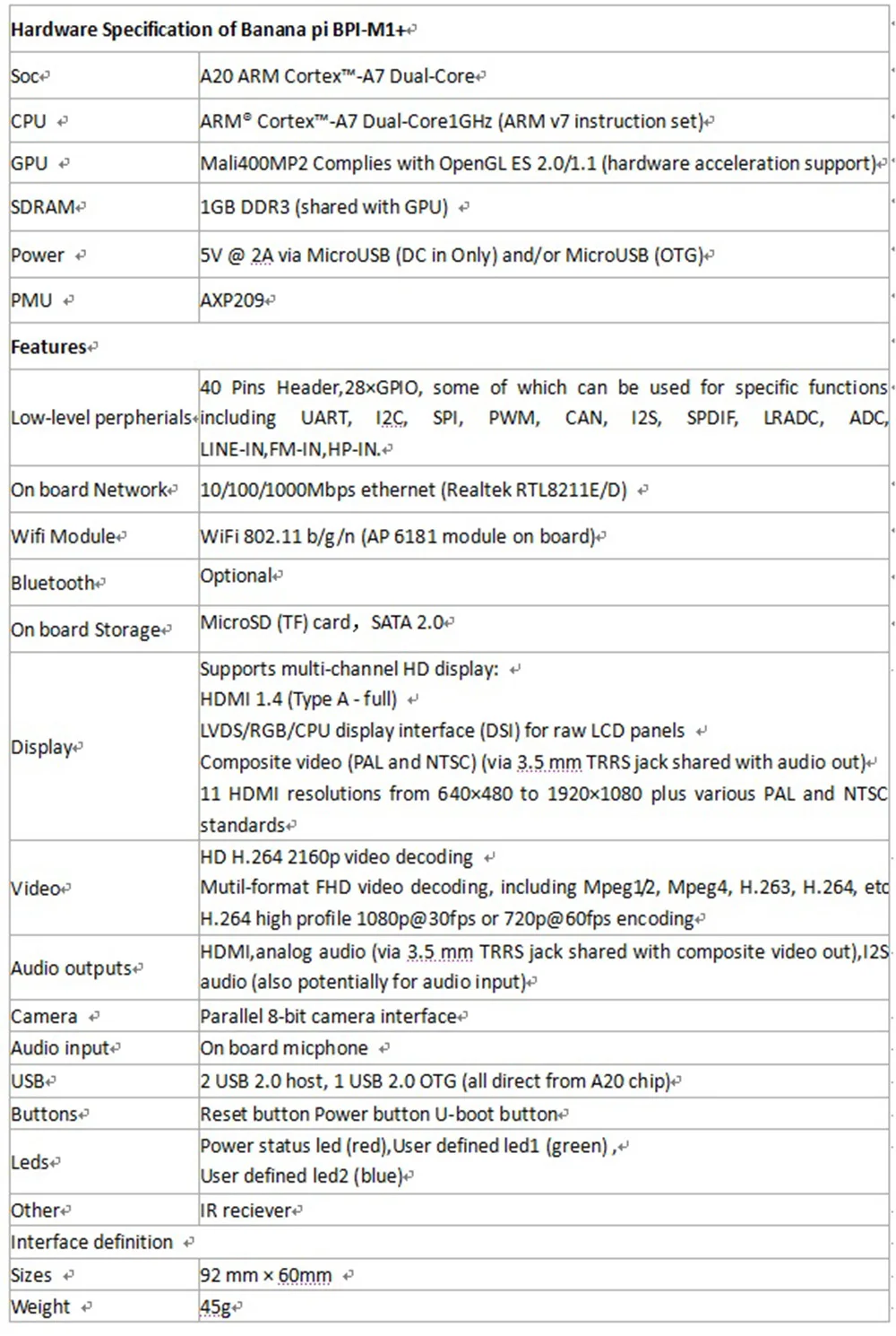 El tamaño de Banana PI BPI-M1+ como la tarjeta de crédito con puerto Gigabit ethernet, SATA Socket.Puede funcionar con Android 4.4 sin problemas, al mismo tiempoSe ejecuta fácilmente con el juego que admite salida de video de alta definición de 1080P, el GPIO es compatible con Raspberry Pi y puede ejecutar imágenes raspbianas.