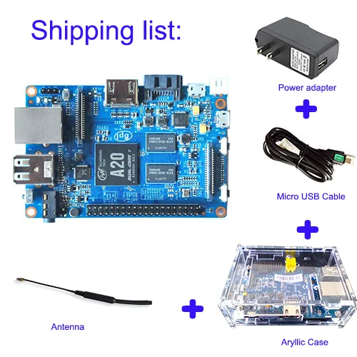 Paquete 2:BPI M1 Plus+Caja acrílica+Adaptador de corriente+Cable micro USB+Antena