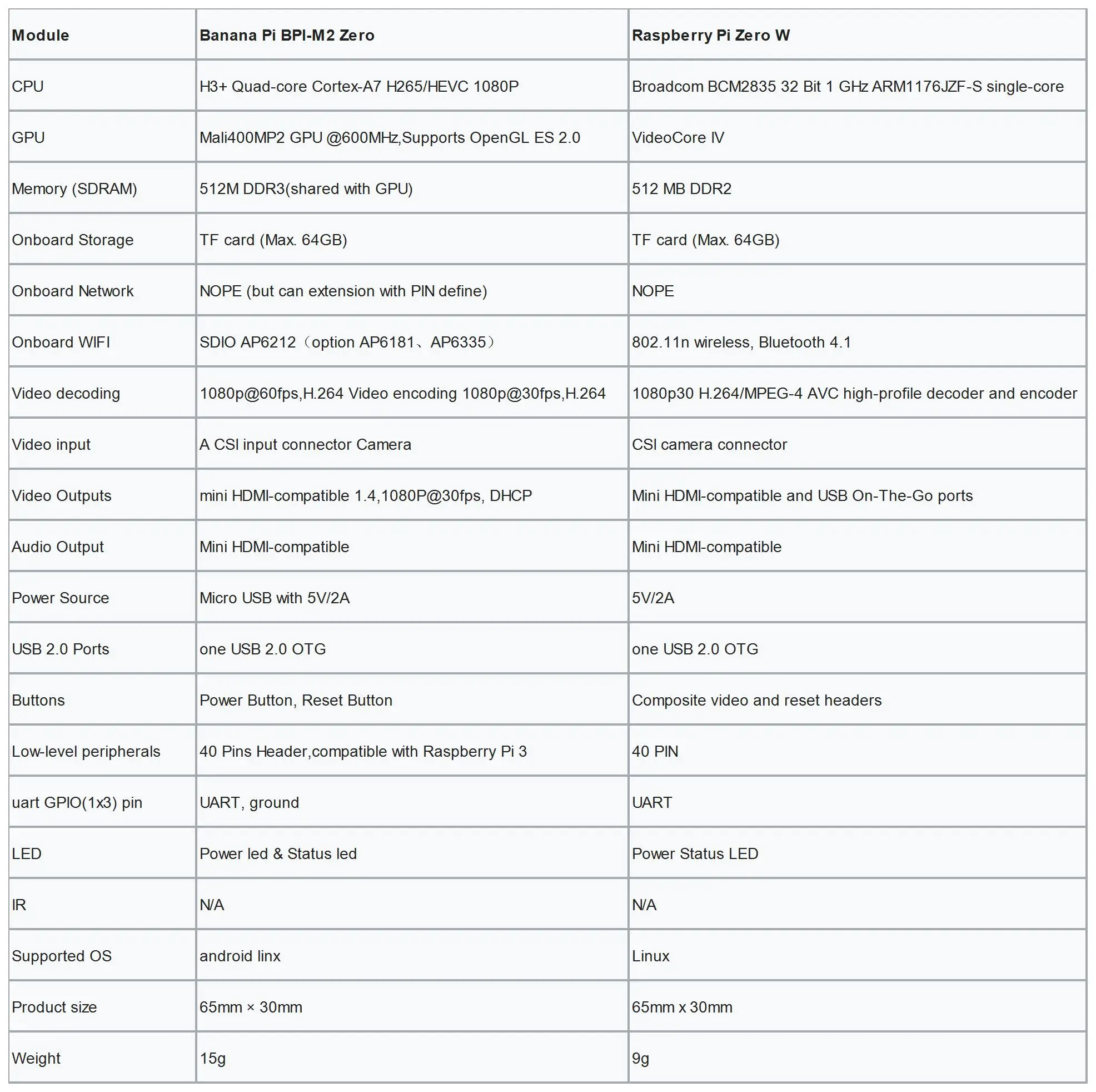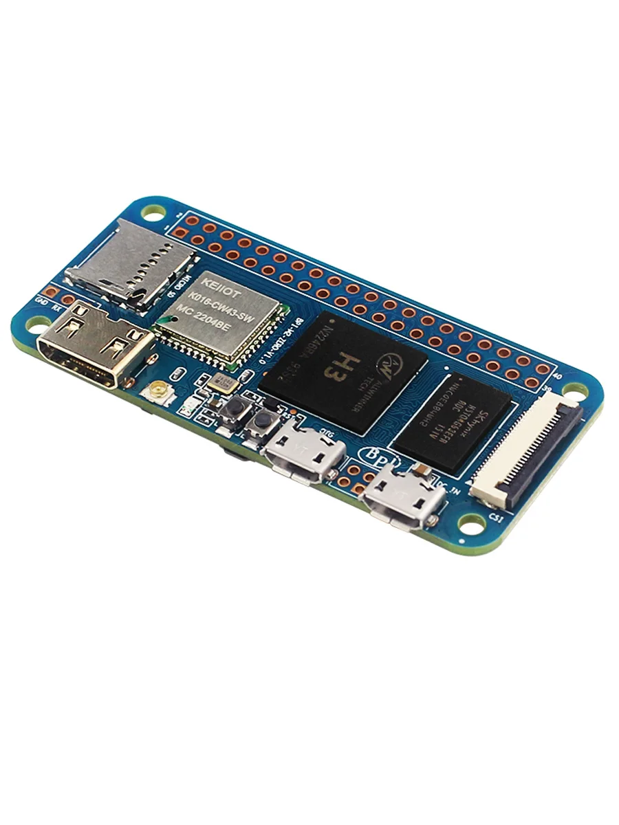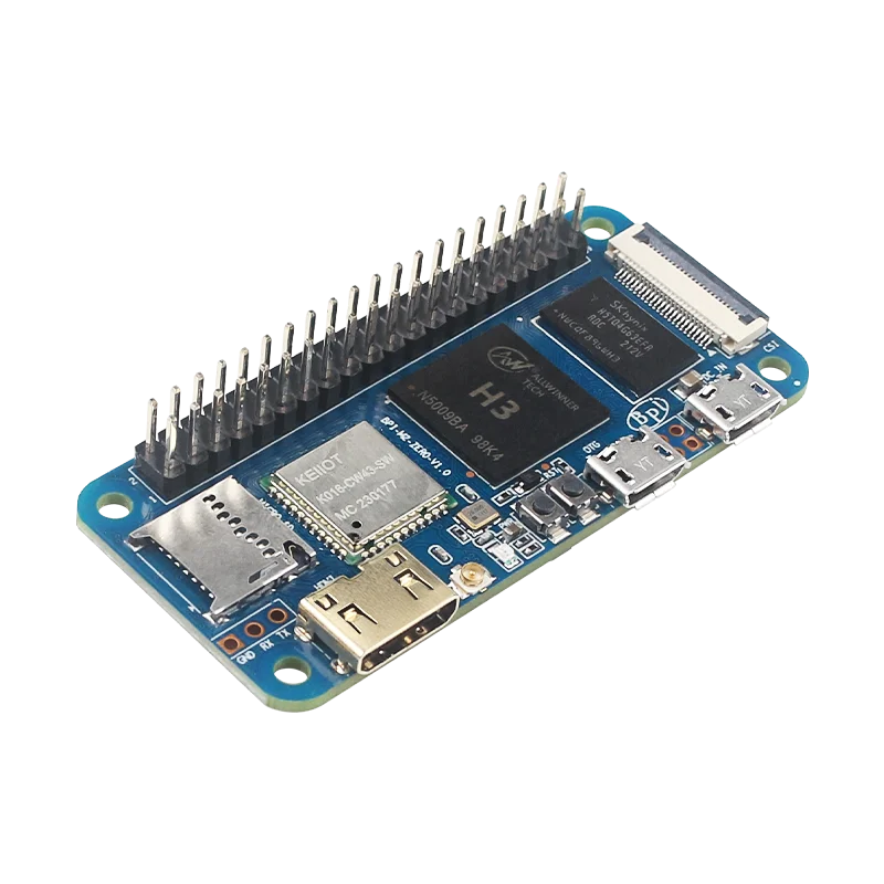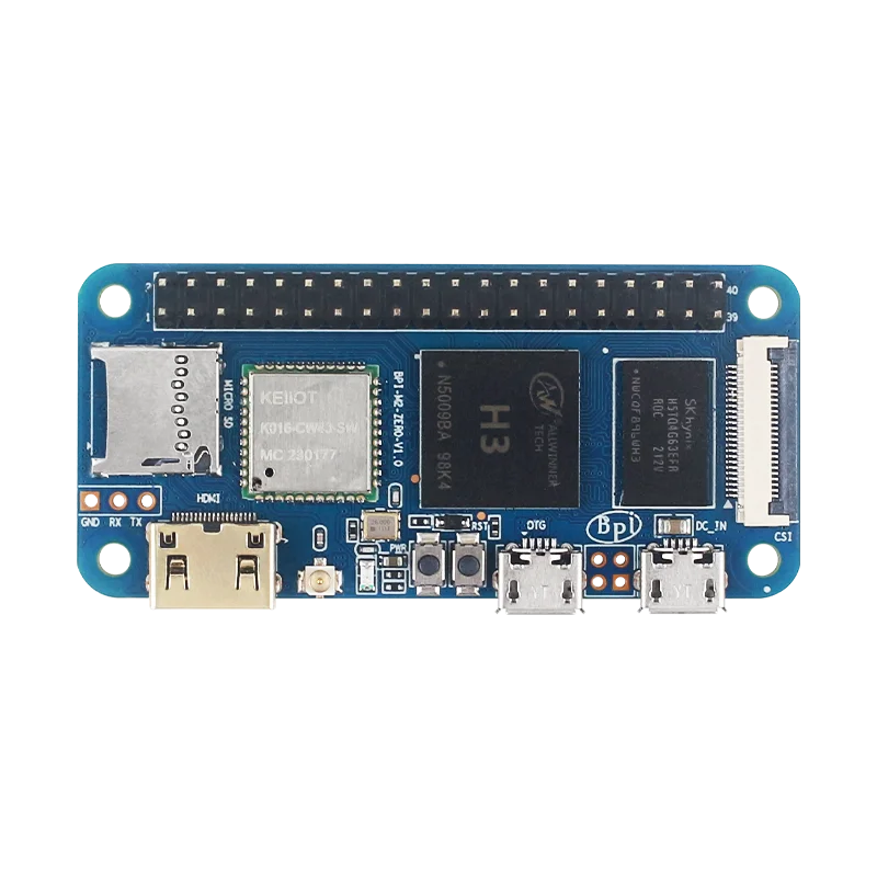 Banana pi BPI-M2 Zero es una computadora de placa única de código abierto extremadamente pequeña, diseñada con la solución de chip Allwinner H3 El tamaño es exactamente el mismo que el de Raspberry pi Zero W, con un tamaño de 60 mm * 30 mm Admite WIFI y Bluetooth integrados, Memoria de 512 M, interfaz Mini HDMI.