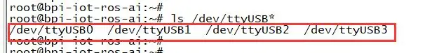 1.4.Luego ejecute el orden de "ls /dev/ttyUSB*" para verificar si el módulo 4G se ha recongido como dispositivo USB; si muestra información en el cuadro rojo, significa que el módulo 4G se ha reconocido correctamente.