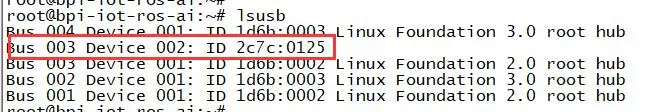 1.3.Ejecute el orden de 'lsusb' para verificar si el sistema ha sido reconocido el módulo 4G; si muestra el cuadro rojo como se muestra a continuación, significa que se ha recongnizado el ID interno.