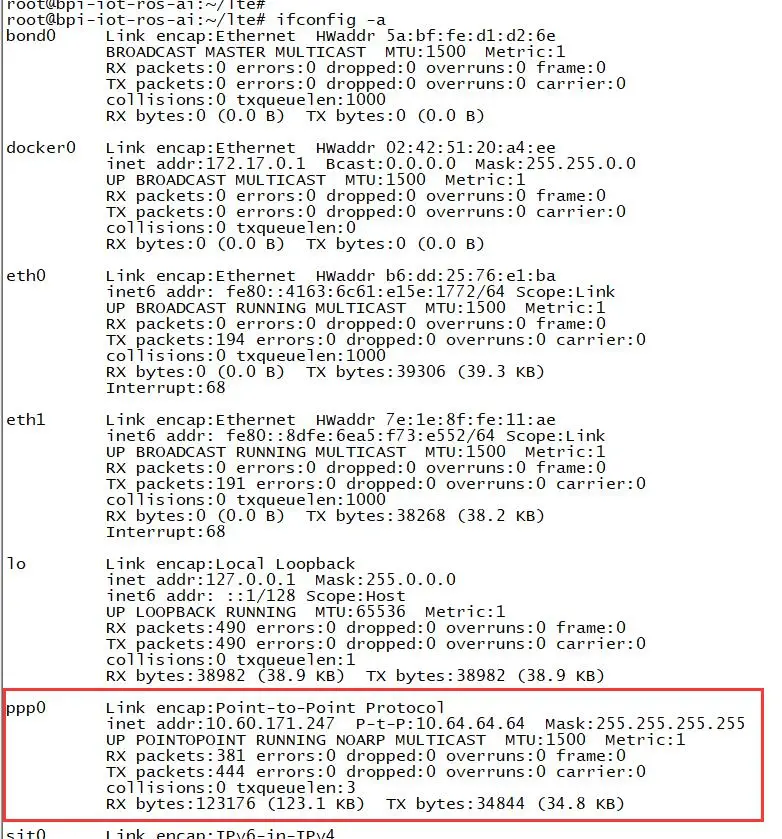 1.5.A continuación, ejecute el script de 'ppp1.s' para marcar al módulo 4G