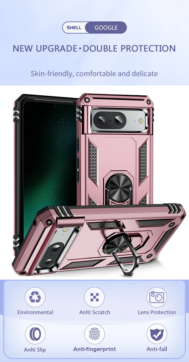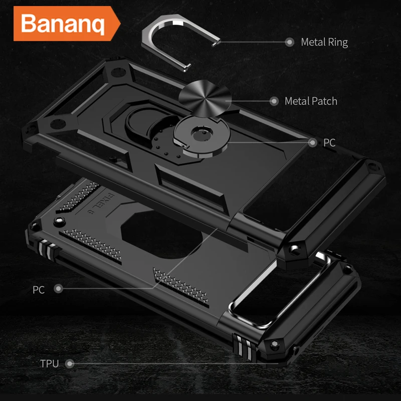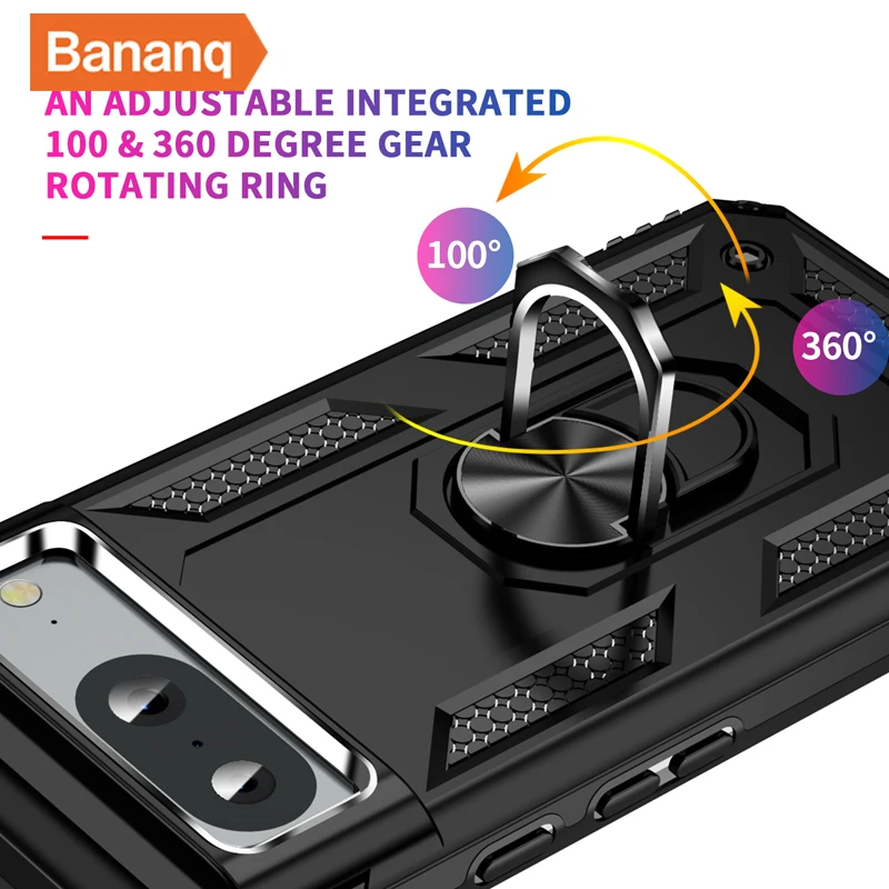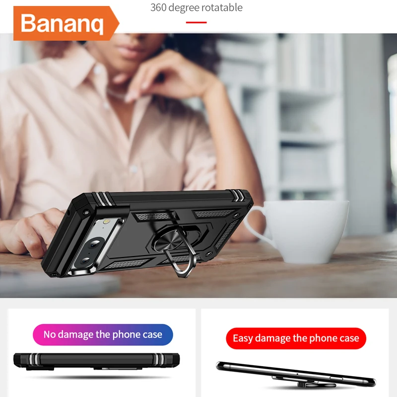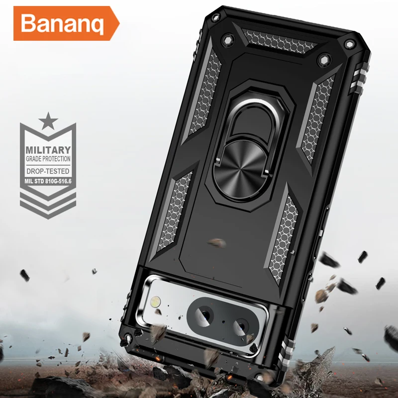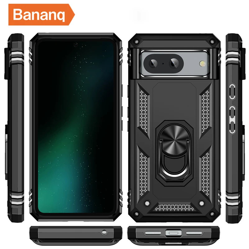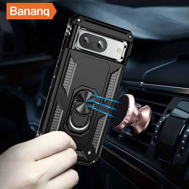 Comprar Bananq-funda protectora con soporte de anillo de Metal a prueba de golpes para Google Pixel 9 8 7 6 Pro 8A 7A 6A, funda magnética para teléfono con soporte para coche