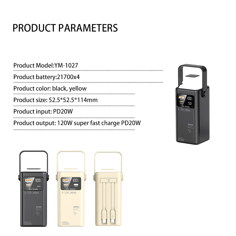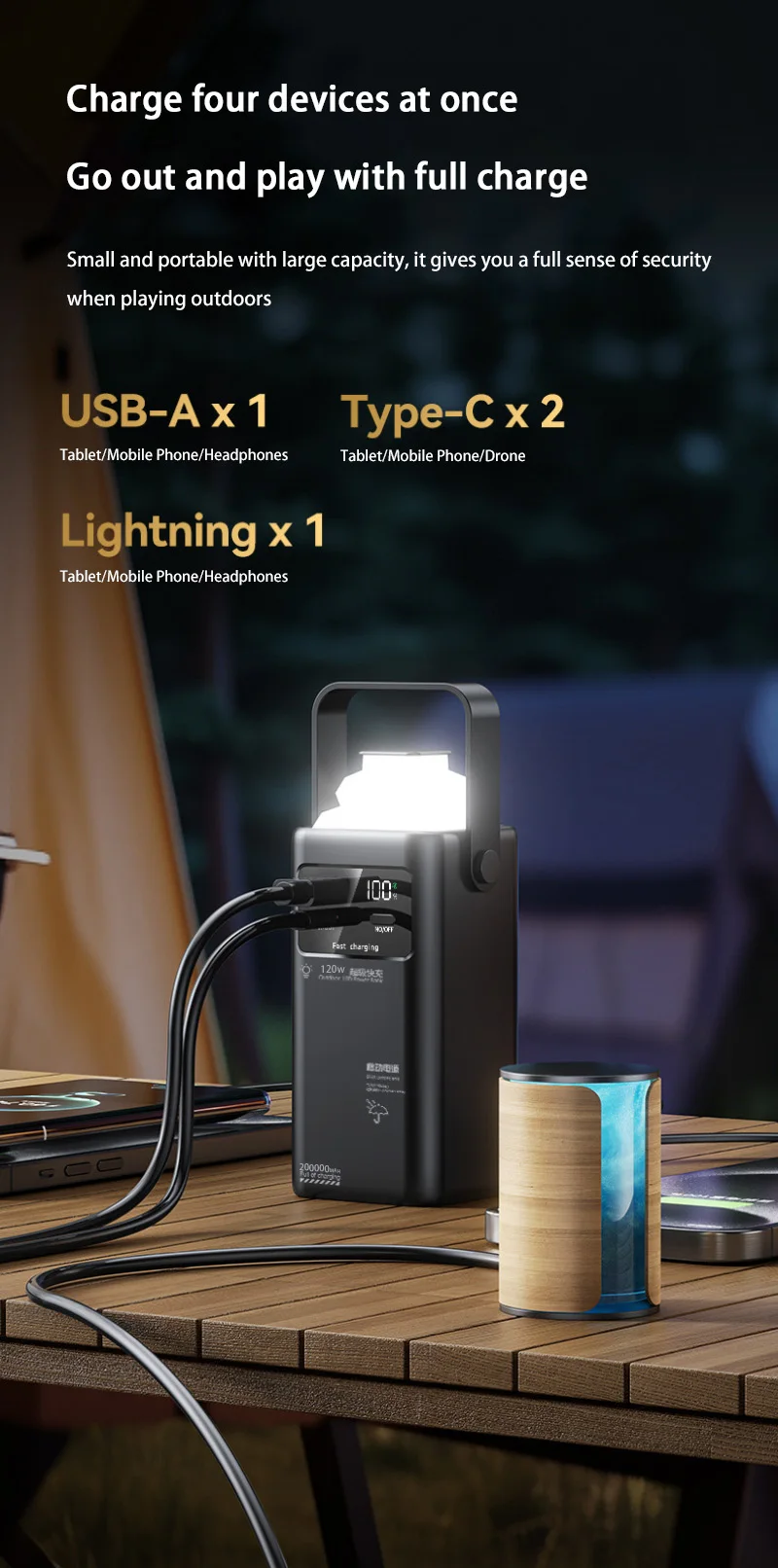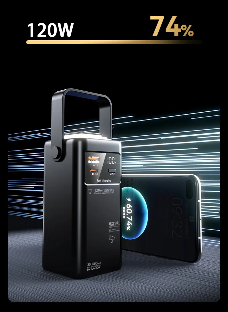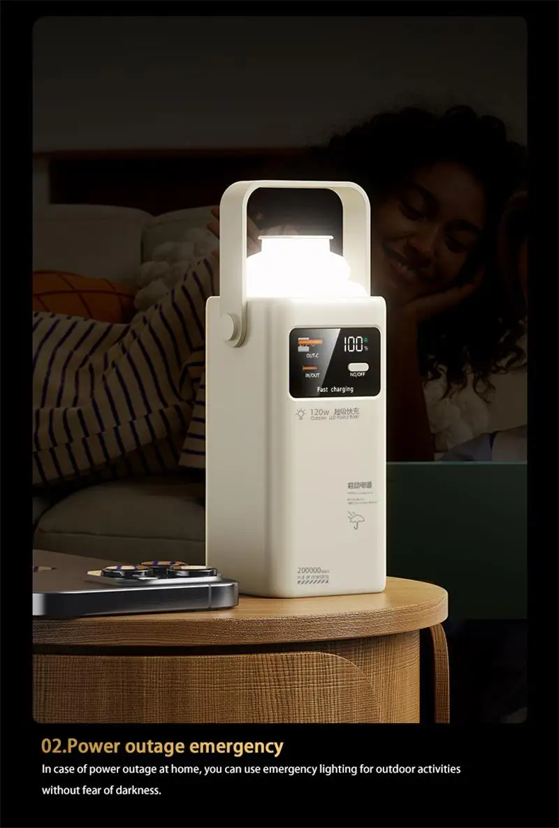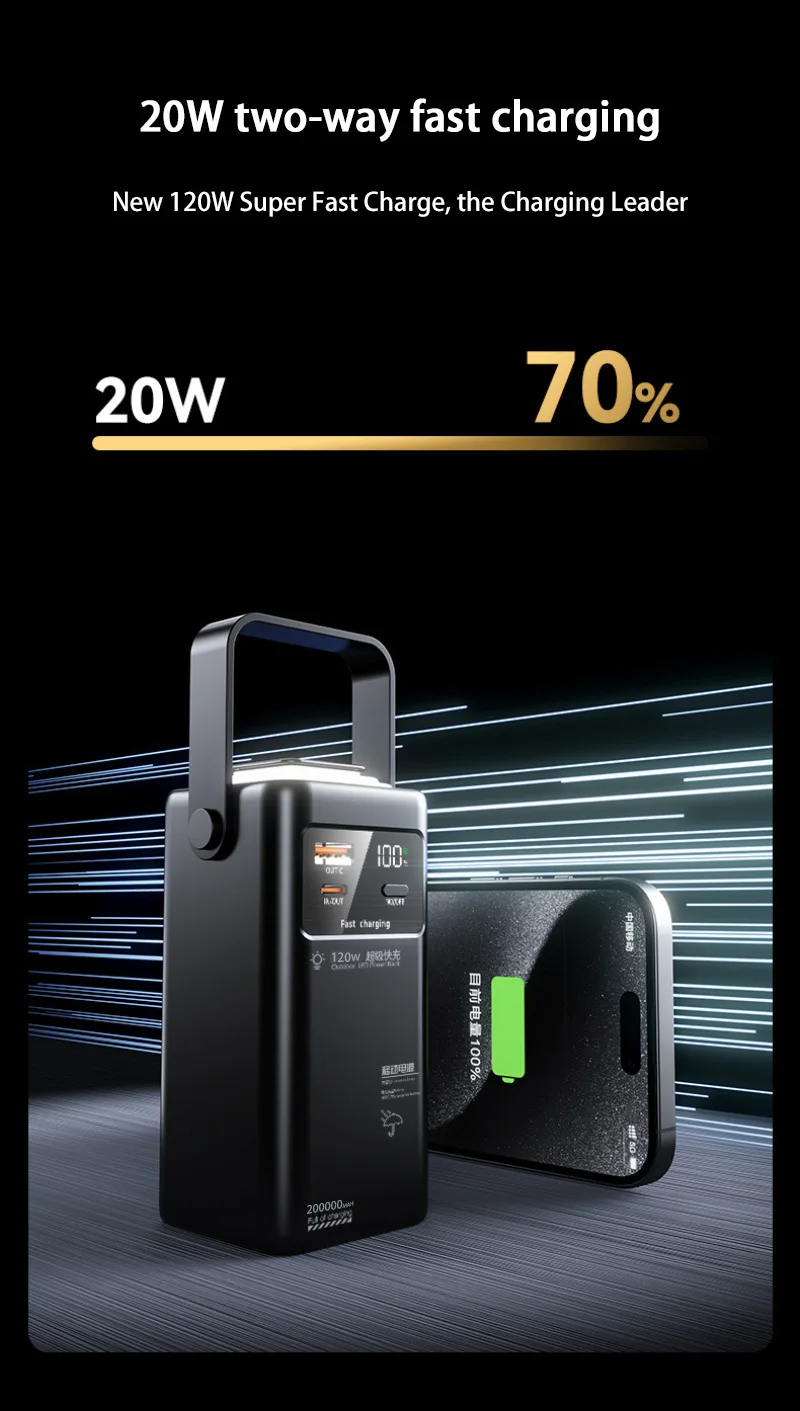 Banco de energía de 200000mAh Fuente de alimentación de emergencia portátil para exteriores de carga rápida de 120W