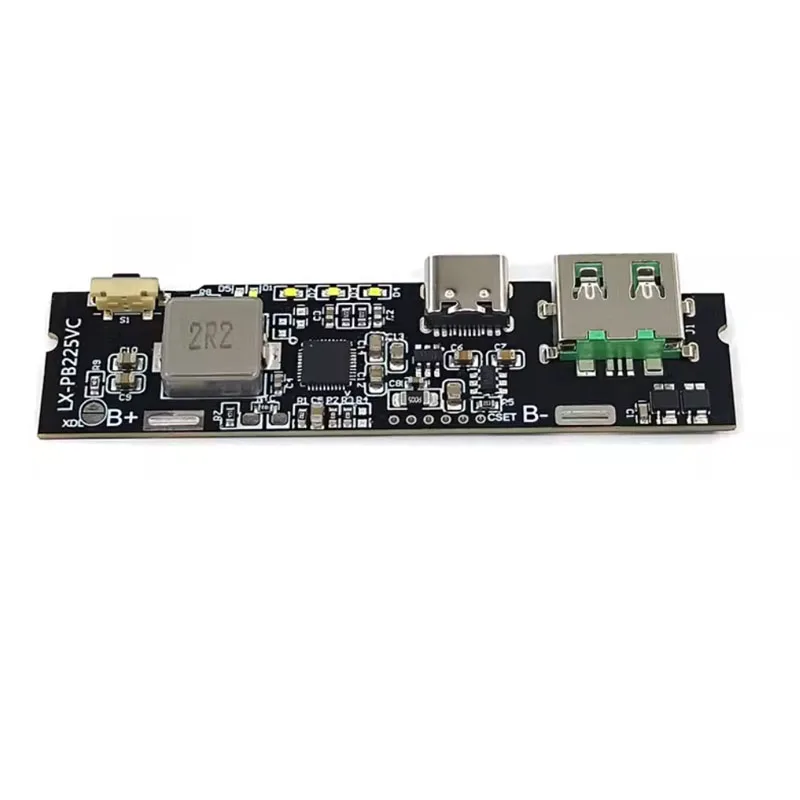 El proceso de carga se divide en los siguientes tres procesos: modo de goteo, modo de corriente constante, modo de voltaje constante. Cuando el voltaje de la batería es inferior a 3V, el módulo de carga está en modo de goteo y la corriente de carga es de 300mA; cuando el voltaje de la batería es superior a 3V, el módulo de carga entra en el modo de corriente constante, en este momento, se carga a toda velocidad de acuerdo con la corriente objetivo establecida, Y la potencia puede ser de alrededor de 21W: cuando el voltaje de la batería aumenta al voltaje objetivo de carga (como 4,2 V), el módulo de carga entra en el modo de voltaje constante, en este momento, la corriente disminuye gradualmente, mientras que el voltaje del terminal de la batería permanece sin cambios: cuando la corriente de carga disminuye a la corriente de corte de carga, Finaliza la carga. Después de la carga completa, si el voltaje de la batería cae a 0,1 V por debajo del voltaje objetivo, la carga se reiniciará automáticamente. (Nota: el voltaje superior a 4,2 V es normal y no dañará la batería. Cuando El voltaje es de 4,2 V, la luz sigue parpadeando, lo que significa que no está completamente cargada. La carga completa no se trata solo del voltaje de carga.) La placa base tiene un total de 5 puertos USB, a saber, 2 + 1 + Micro-B + Tipo C + Lightning. Compatible con QC3.0/Q (2,0/AFC/FCP/SCP/PE2.0/PE1.1/SFCP/VOOC, salida de descarga rápida, 1, 2, 1, 2 y 2, 1, 1, 2, 1, 2, 2, 1, 2, 1, 2 tipo C compatible con PPS/PD3.0/PD2.0/QC4 +/QC3.0/QC2.0/AFC/FCP/SCP/PE2.0/PE1.1/SFCP Salida de carga rápida, compatible con PD3.0/PD2.0/ Note