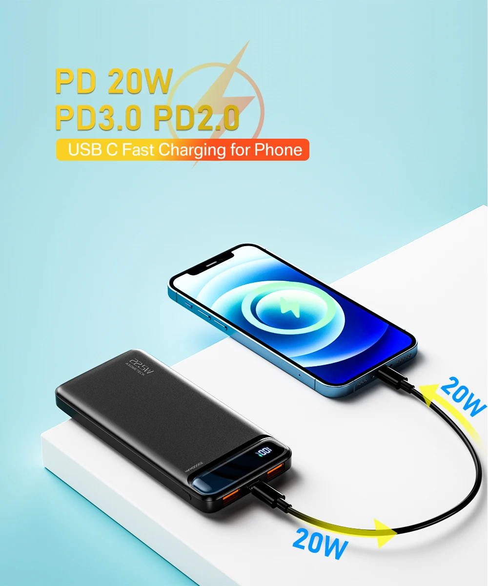 Comprar Banco de energía de carga rápida QC PD, batería externa portátil de 10000 mAh para iPhone 13 12 11 Xiaomi