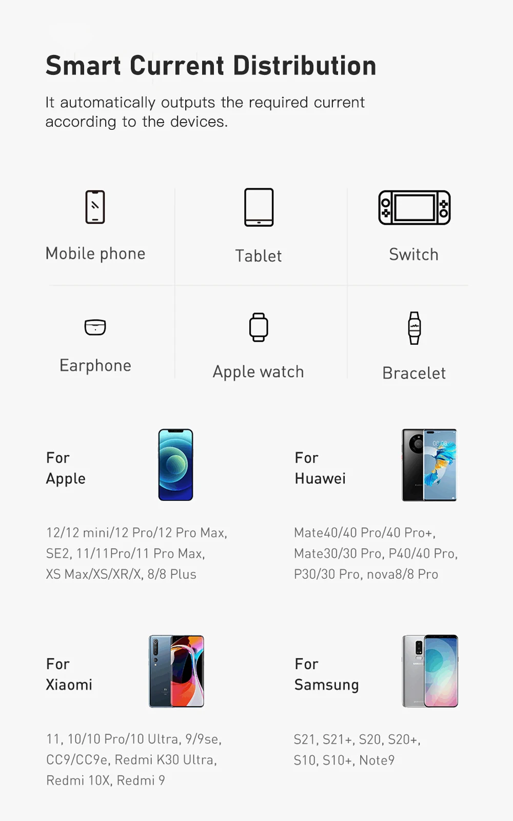 Carga rápidamente iPhone/Mi/Huawei/Samsung y otros teléfonos móviles.