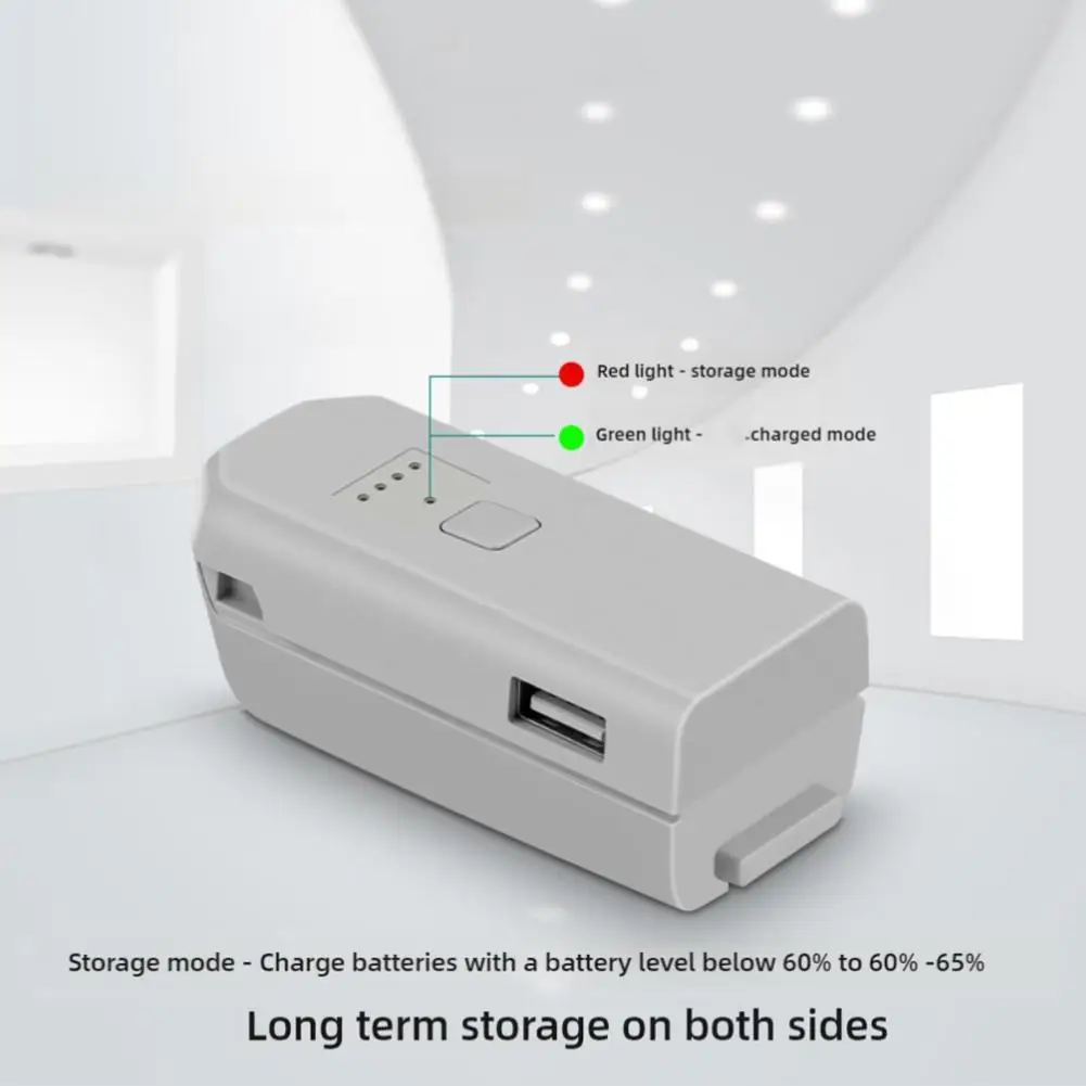 1.El modo de almacenamiento puede cargar baterías con un nivel de batería inferior al 60% a aproximadamente -65% y luego dejar de cargar automáticamente.Al almacenar la batería del dron sin energía o con plena potencia hará que la batería se decolore y se hinche.El almacenamiento a largo plazo requiere una descarga de aproximadamente 60%.
