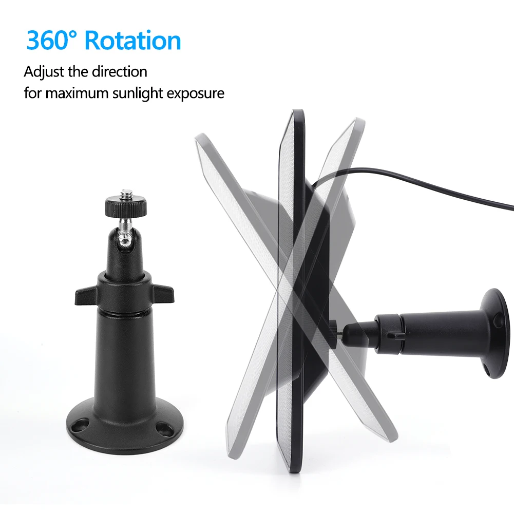 5.Fácil instalación:Este panel solar carga su cámara exterior Blink usando la luz solar (retire la batería).Puedes instalarlo en cualquier lugar al aire libre.Simplemente taladre un agujero en la pared e instale el 360° soporte giratorio, coloque el panel solar hacia la luz solar directa y conecte el cable de carga Micro USB sellado de goma en el puerto en la parte posterior de su cámara para exteriores Blink.Antes de conectar este panel solar, retire la batería de la cámara Blink.Cubrir parcialmente el panel solar puede afectar su eficiencia de generación de energía.La intensidad de la luz solar varía según las diferentes estaciones y condiciones climáticas, lo que afecta la generación de energía.Ajuste el ángulo del panel solar en tiempo real para maximizar la exposición a la luz solar.Incline ligeramente el panel solar para evitar que hojas, agua o polvo se deposigan en su superficie.Limpie regularmente las hojas, el polvo y las rayas de lluvia en la superficie del panel solar para prolongar su vida útil.