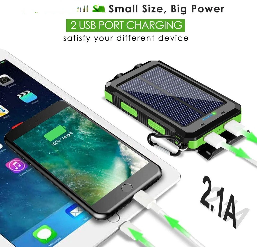 Características del producto 1, grado súper impermeable (IP68) el nivel más alto de impermeable 2, impermeable, a prueba de polvo, anticaída, a prueba de golpes, función anti-soporte (cinco versiones anti-actualización) 3, baterías de polímero de iones de litio A incorporadas (a prueba de explosiones) 4. La potencia de carga de la energía solar es muy baja y solo se puede usar en emergencias. La potencia de carga es de aproximadamente 0.2A 5, materiales compuestos, materiales ignífugos de PC, seguros y sin preocupaciones 6, con un diseño de doble luz LED militar súper brillante y luz de señal de emergencia SOS (súper luz) 7, interfaz USB dual, protección contra cortocircuitos de sobrecorriente y sobredescarga (seguridad del dispositivo) 8, Chip digital importado, Alta tasa de conversión, superhéroe de almacenamiento de energía Primera clase 9, diseño de brújula de carcasa trasera; hebilla de Montañismo de configuración, se puede colgar en la mochila