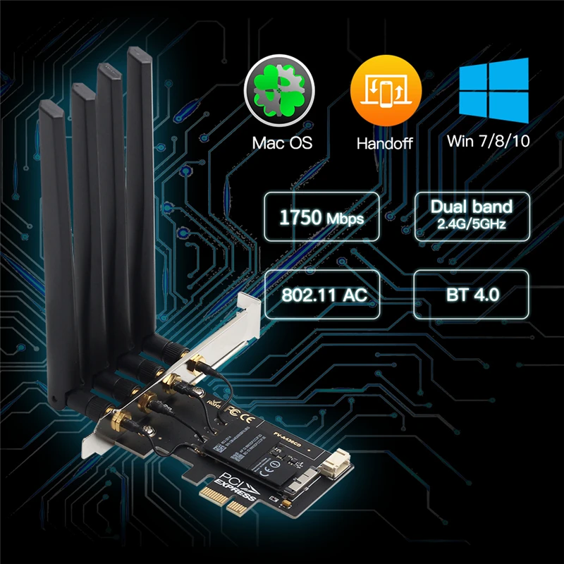 Comprar Banda Dual 1750Mbps 802.11ac Bcm4360 WiFi para Bluetooth 4,0 BCM94360CD PCIE adaptador inalámbrico MacOS Hackintosh AirPort Dekstop PC