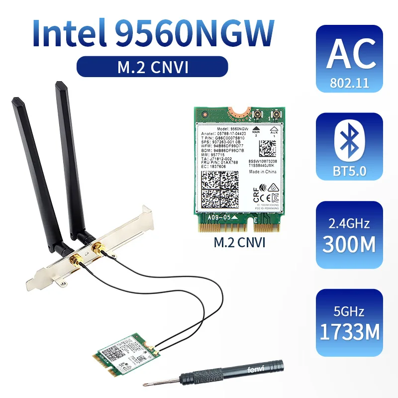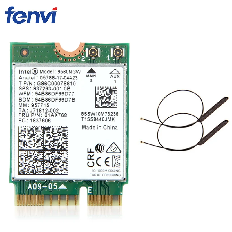 Comprar Banda Dual inalámbrica para Intel 9560AC, 9560NGW, 1,73 Gbps, Wifi, 802.11ac, Bluetooth 5,0, tarjeta Wlan con antenas MHF4 U F.L, Windows 10