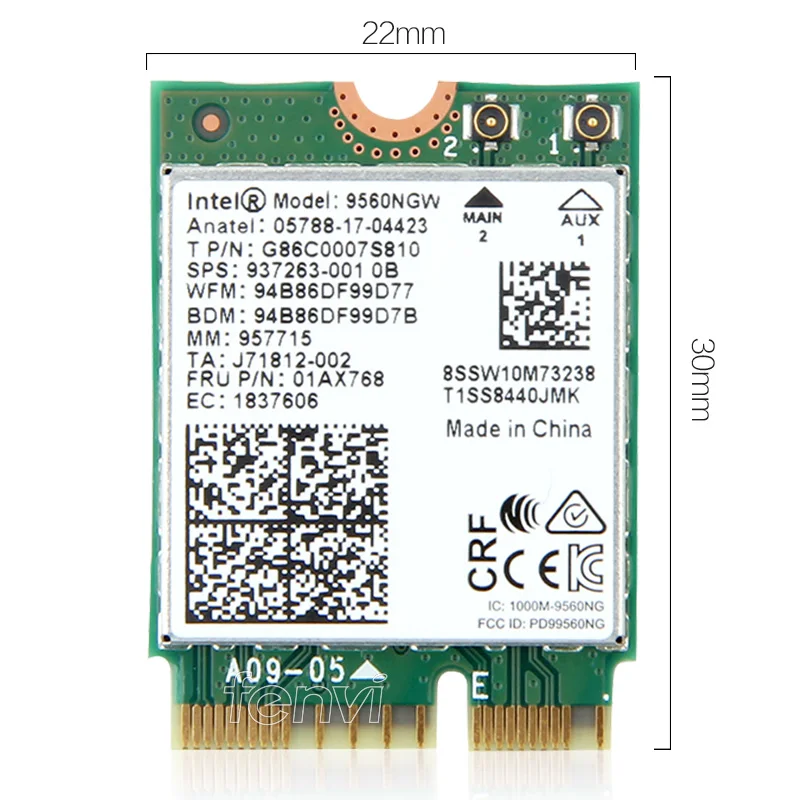 Intel 9560NGW AC con juego de antenas de 2 piezas.