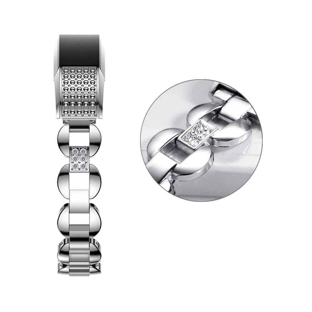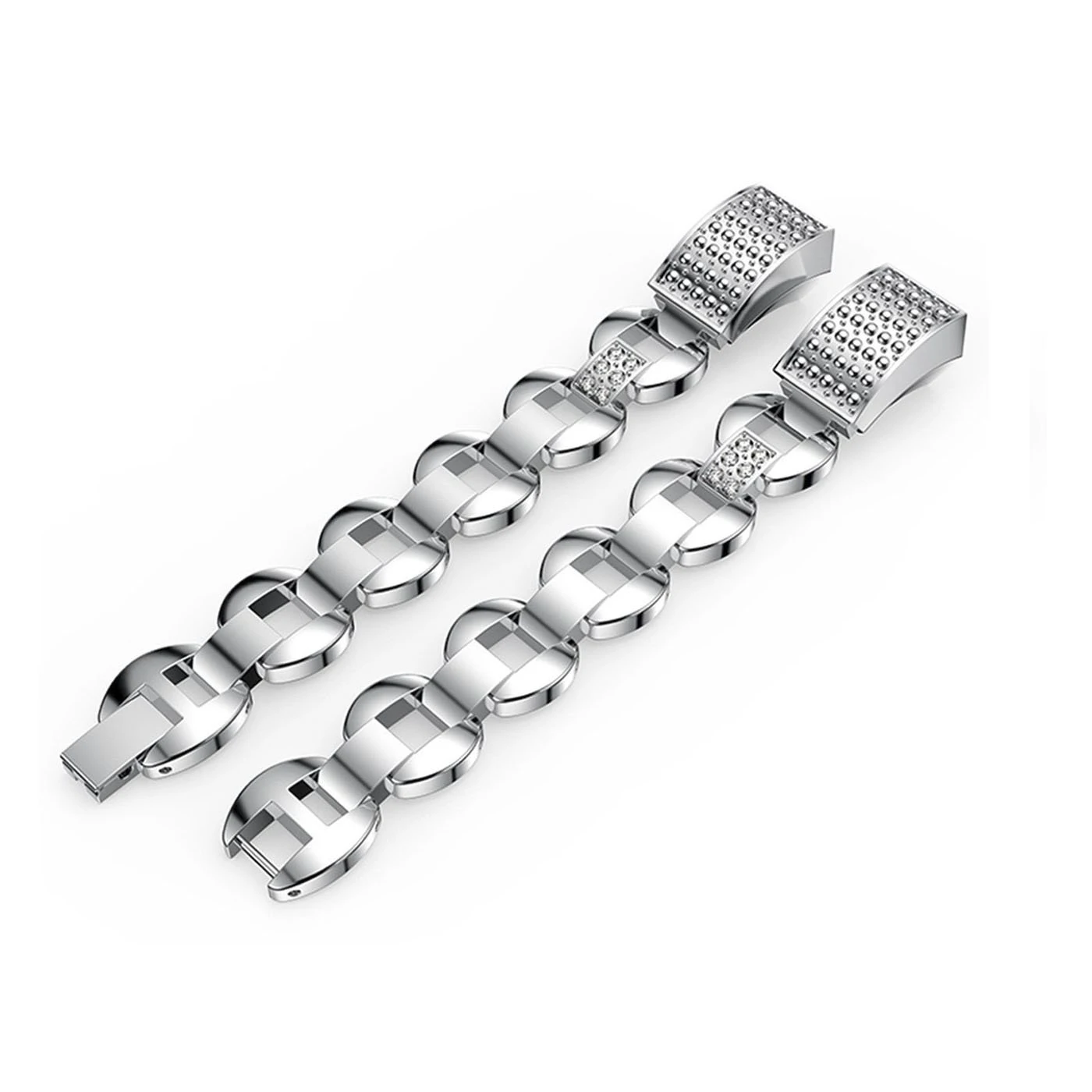 Comprar Bandas de repuesto para Fitbit Alta/Fitbit Alta HR para mujer, banda con purpurina de diamantes de imitación, pulsera de Metal, muñequeras (Plateadas)