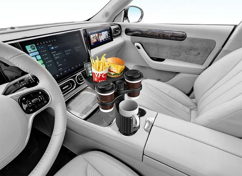 • Diseño expandible para espacio extra :El diseño expandible de Esta bandeja de expansor para portavasos proporciona espacio adicional para guardar sus bebidas y alimentos, lo que lo hace perfecto para viajes largos por carretera.