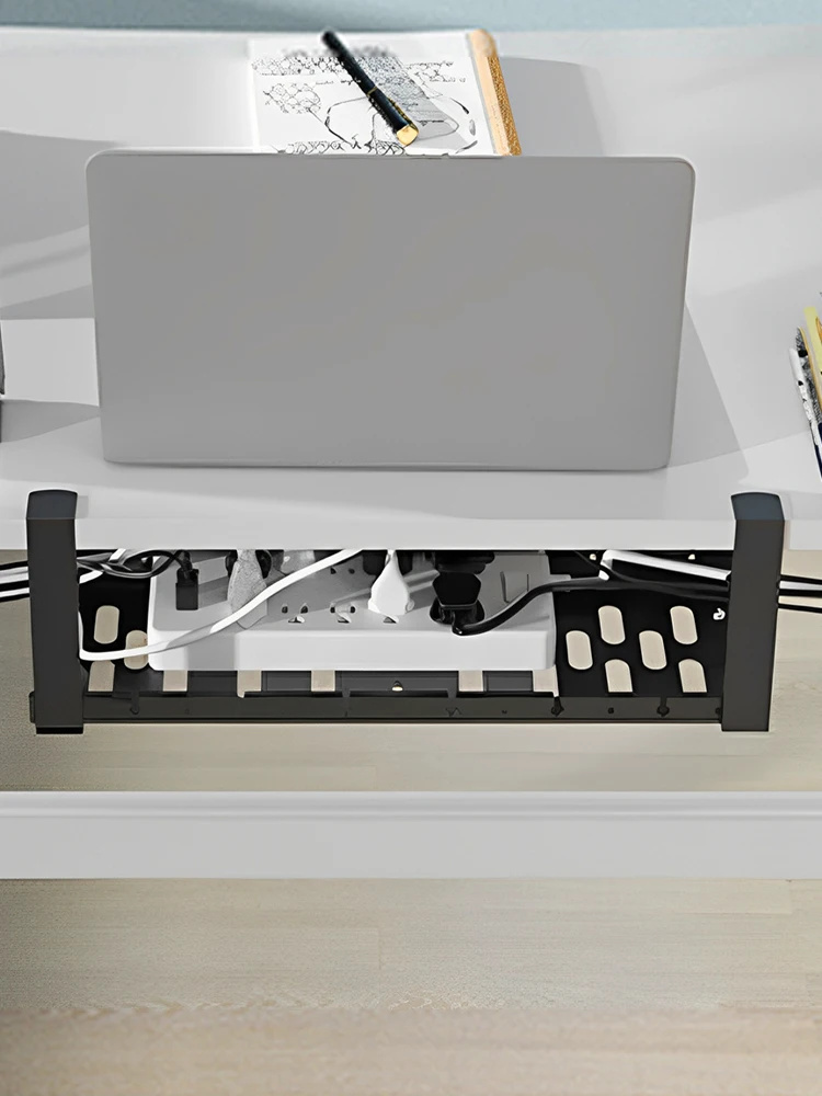 3.Amplia capacidad:Con su gran capacidad, este estante para cables debajo del escritorio se puede ajustar a cualquier longitud necesaria, proporcionando un amplio espacio para gestionar numerosos cables.Es perfecto para organizar el desorden en diversos entornos, desde escritorios de oficina hasta configuraciones domésticas.