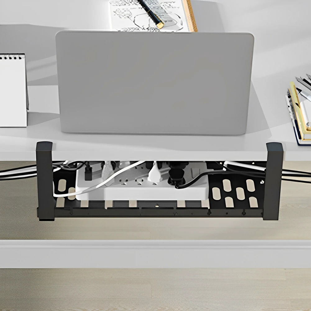 3.Amplia capacidad:Con su gran capacidad, este estante para cables debajo del escritorio se puede ajustar a cualquier longitud necesaria, proporcionando un amplio espacio para gestionar numerosos cables.Es perfecto para organizar el desorden en diversos entornos, desde escritorios de oficina hasta configuraciones domésticas.