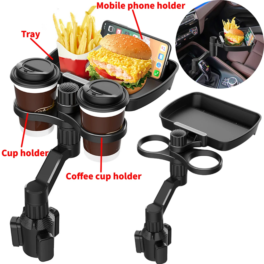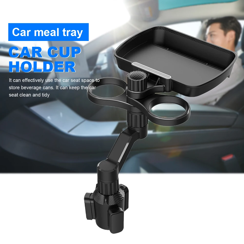 Comprar Bandeja portavasos para coche con Base giratoria, portavasos ajustable de 360 grados, bandeja de comida, portavasos organizado para accesorios de coche