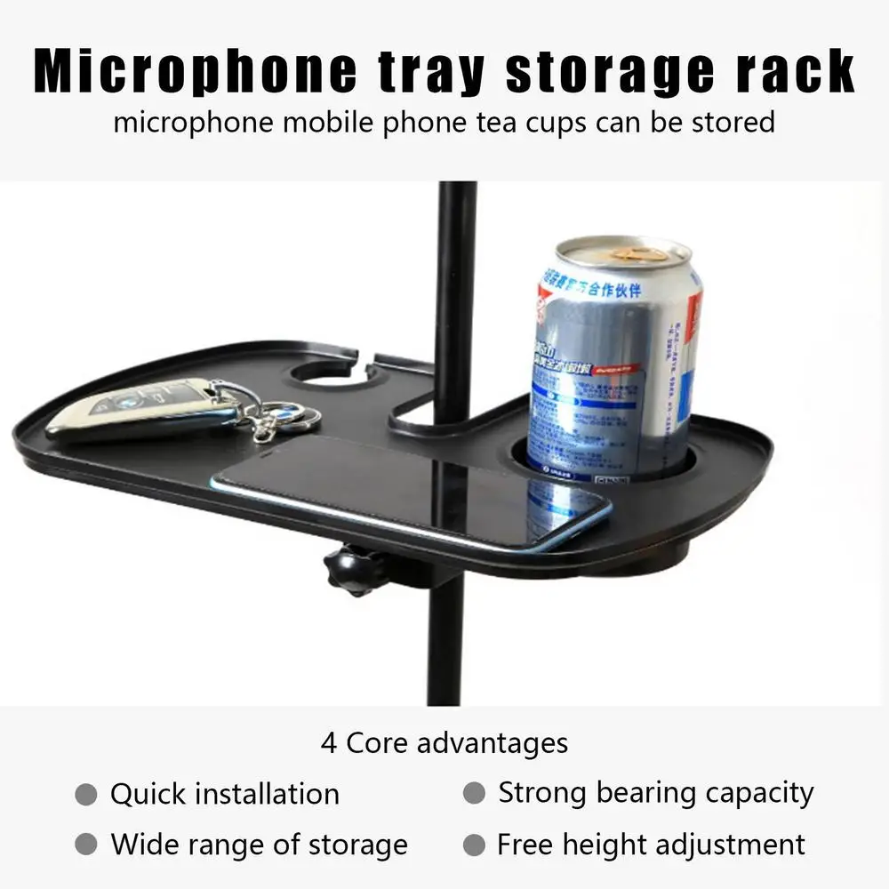 3. Amplia gama de usos: Esta bandeja de soporte de micrófono es más que un soporte para su micrófono. También le permite almacenar sus teléfonos móviles, tazas, artículos pequeños, llaves y más. No importa lo que necesite, esta bandeja lo tiene cubierto.