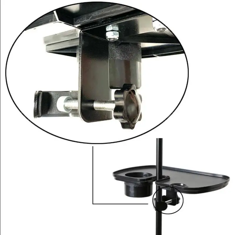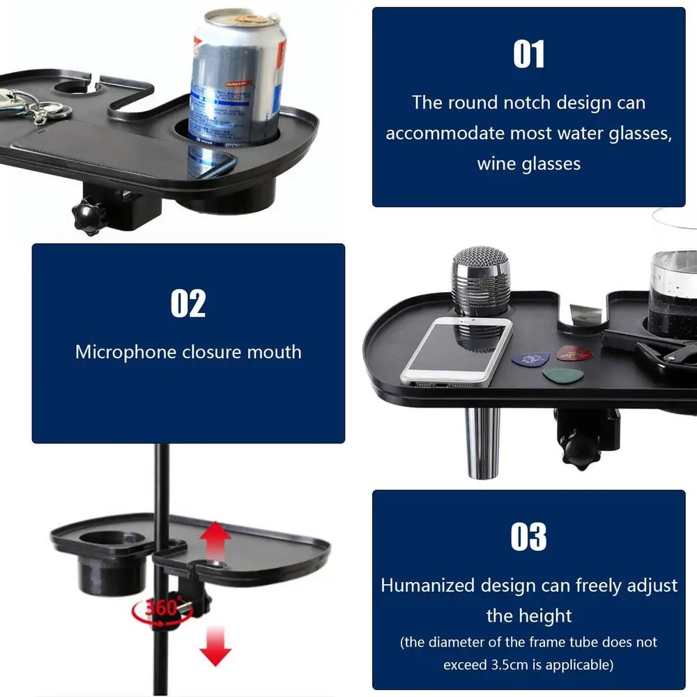 5. Instalar con facilidad: Esta bandeja de soporte para micrófono se adapta a cualquier poste de menos de 3,5 cm de diámetro (poste no incluido) y es fácil de instalar. También puede ajustar la altura y el ángulo del soporte de la bandeja para adaptarse a sus preferencias.