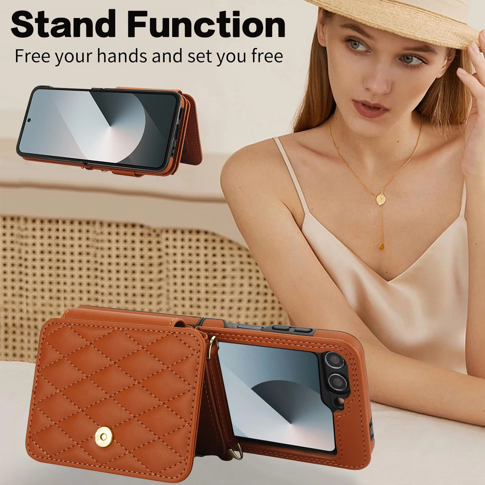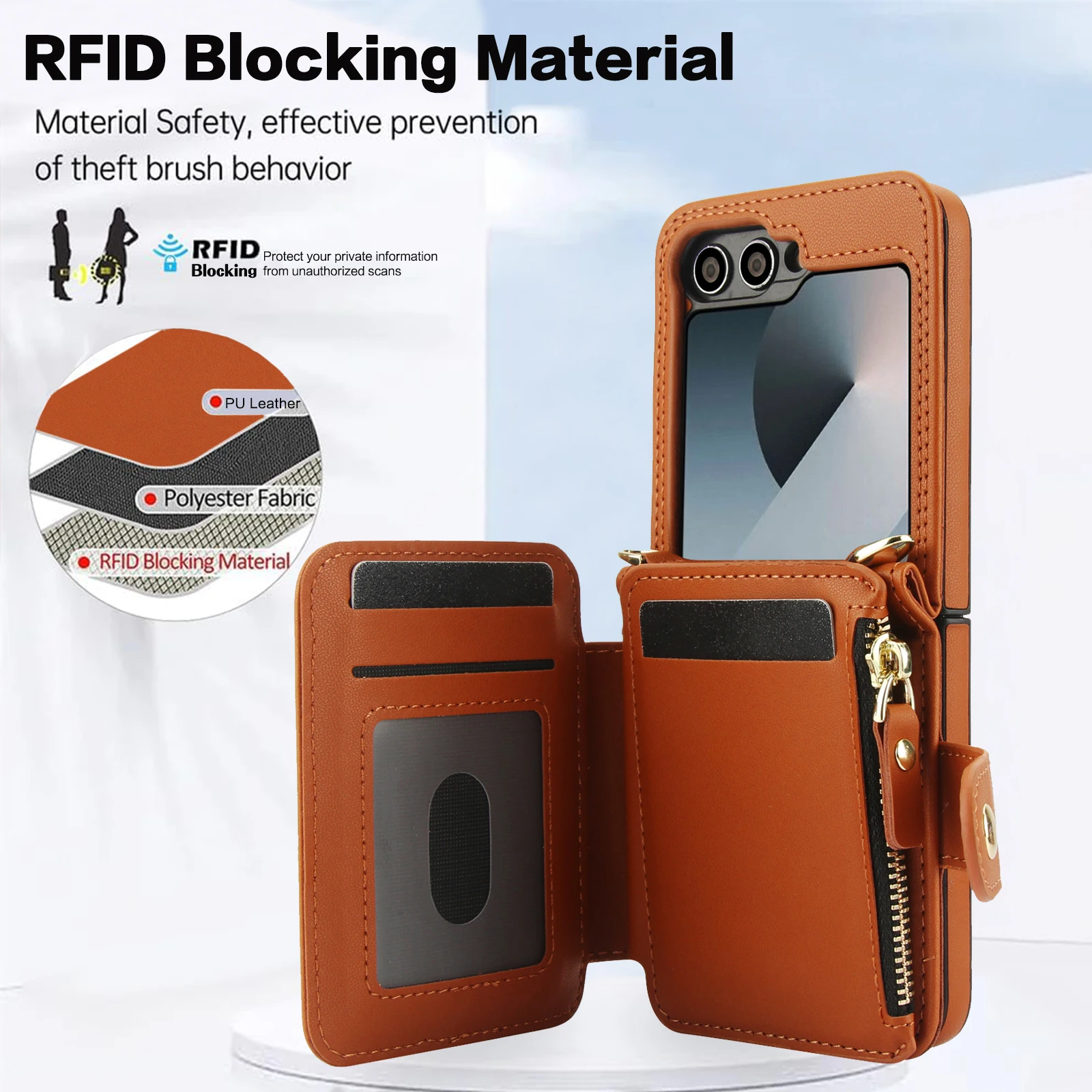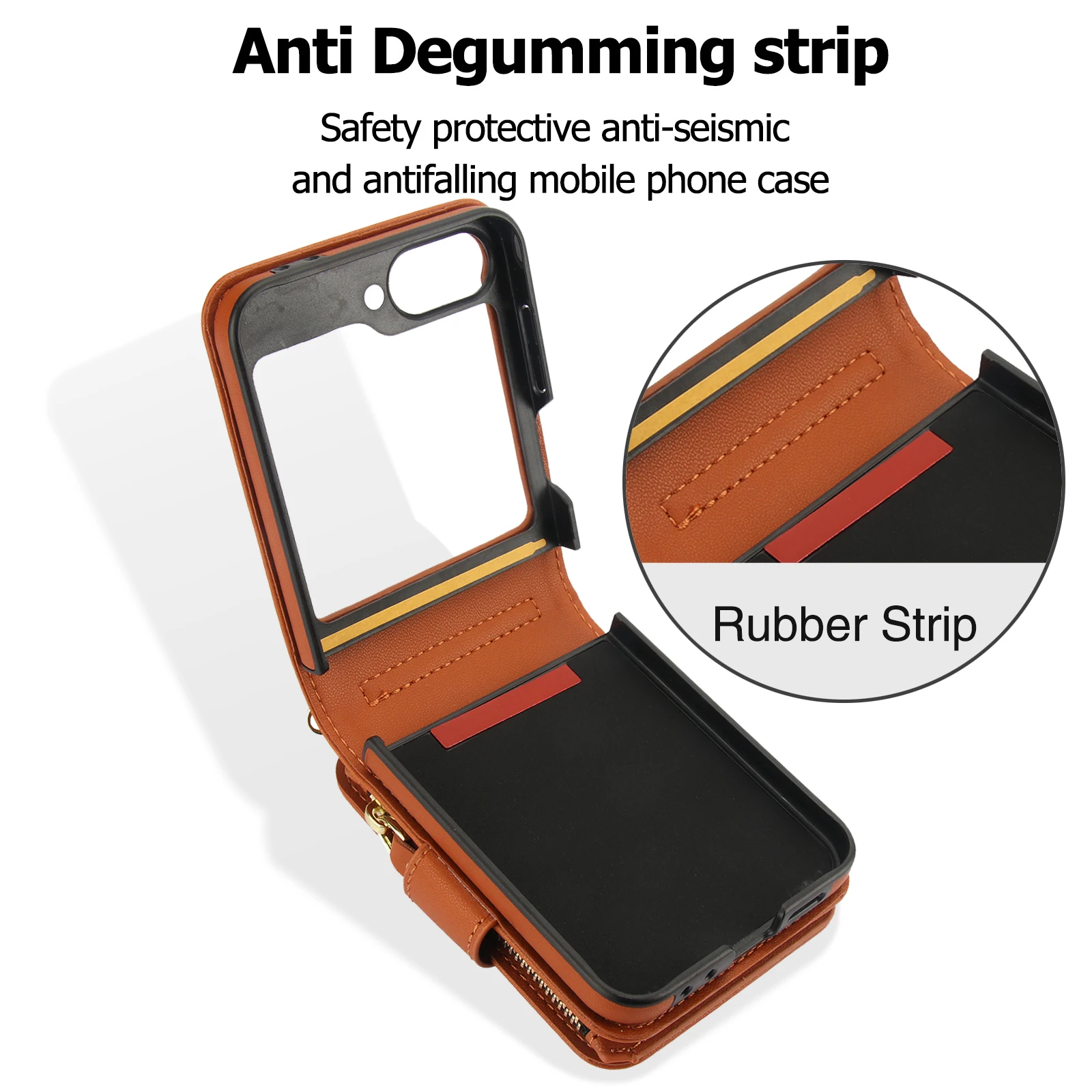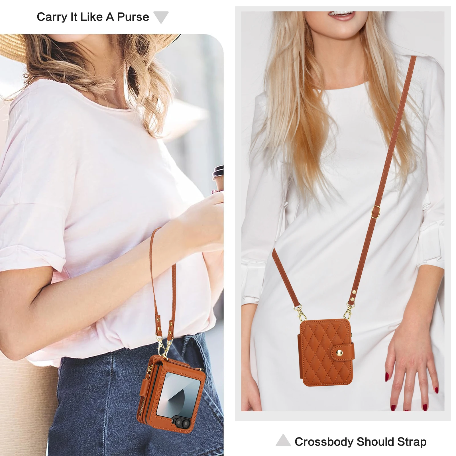 Funda cruzada con cremallera para tarjetas Solt, funda de cuero tipo billetera para Samsung Galaxy Z Flip 6 5 4 3 5G Flip6 Flip5, funda con cordón, funda de rejilla fragante