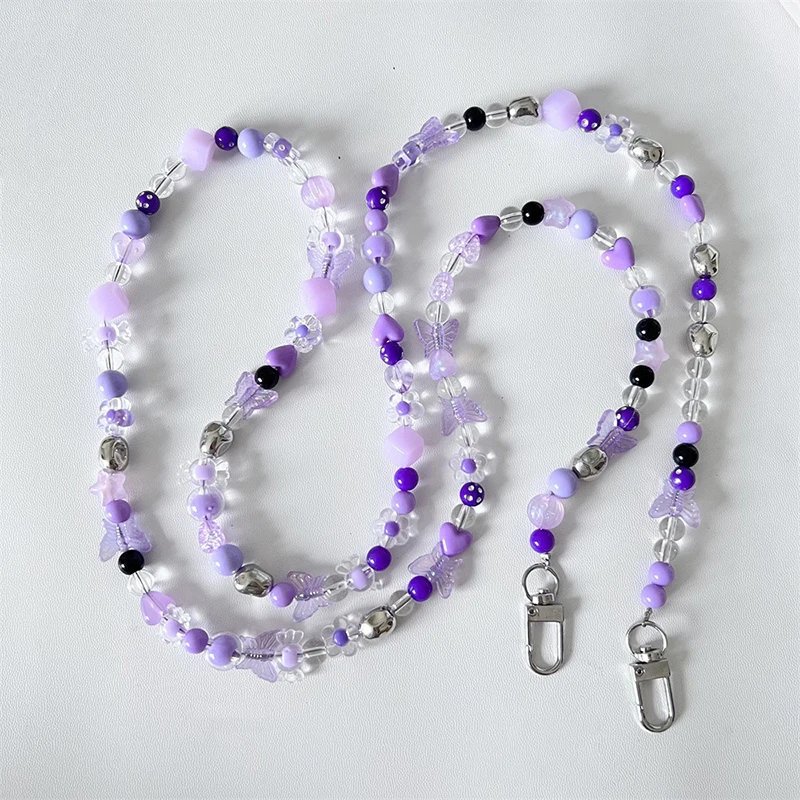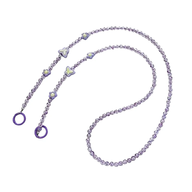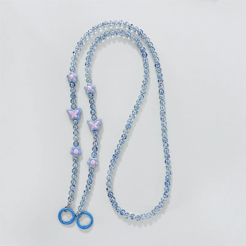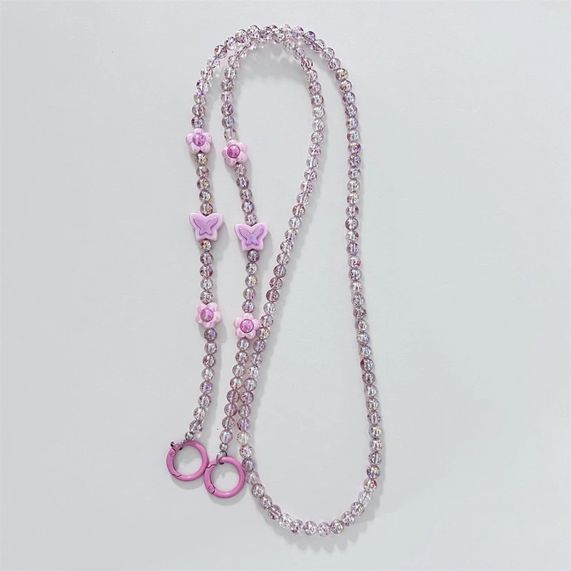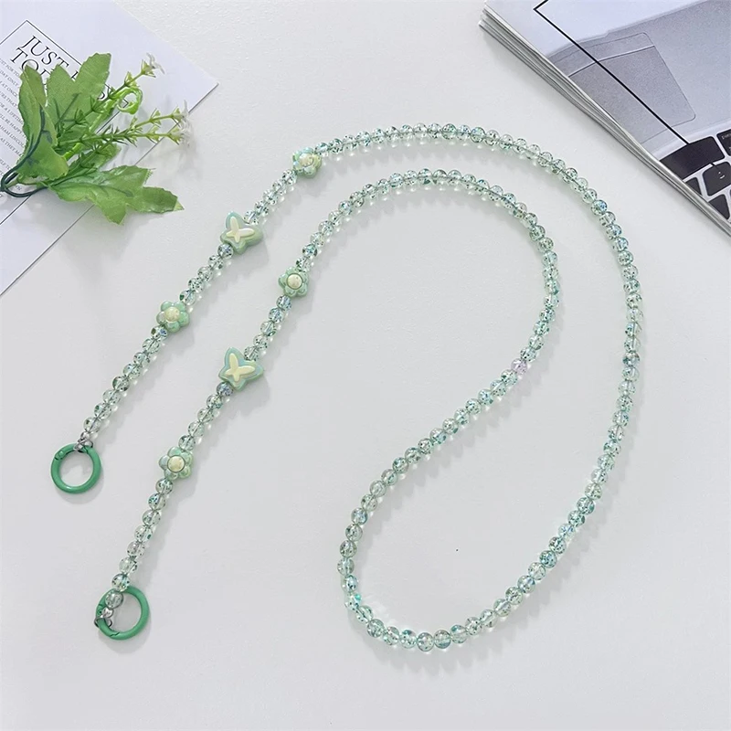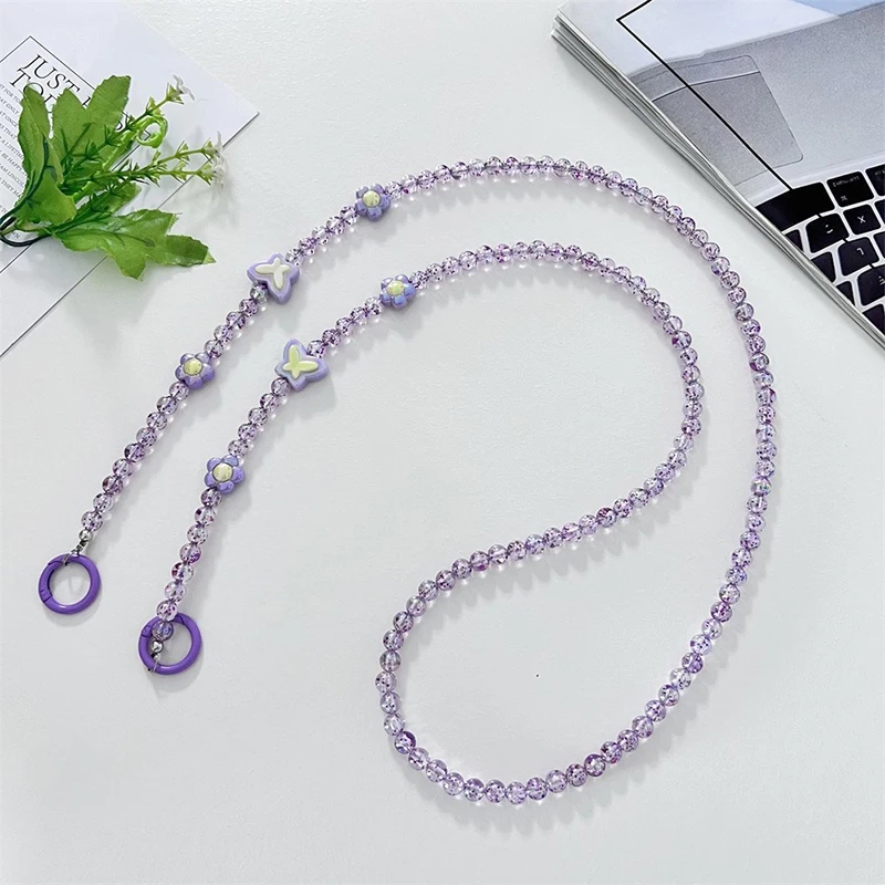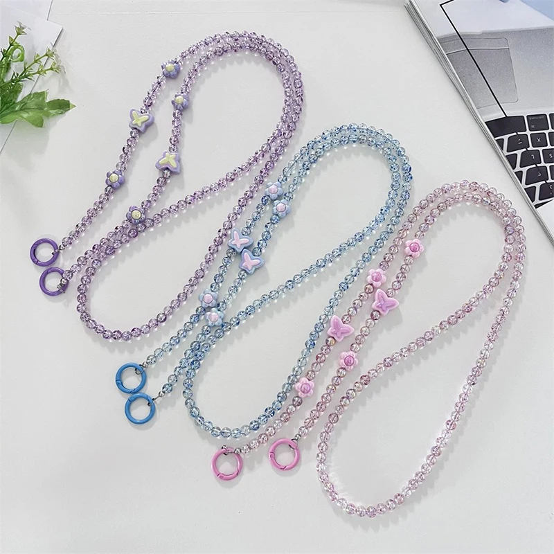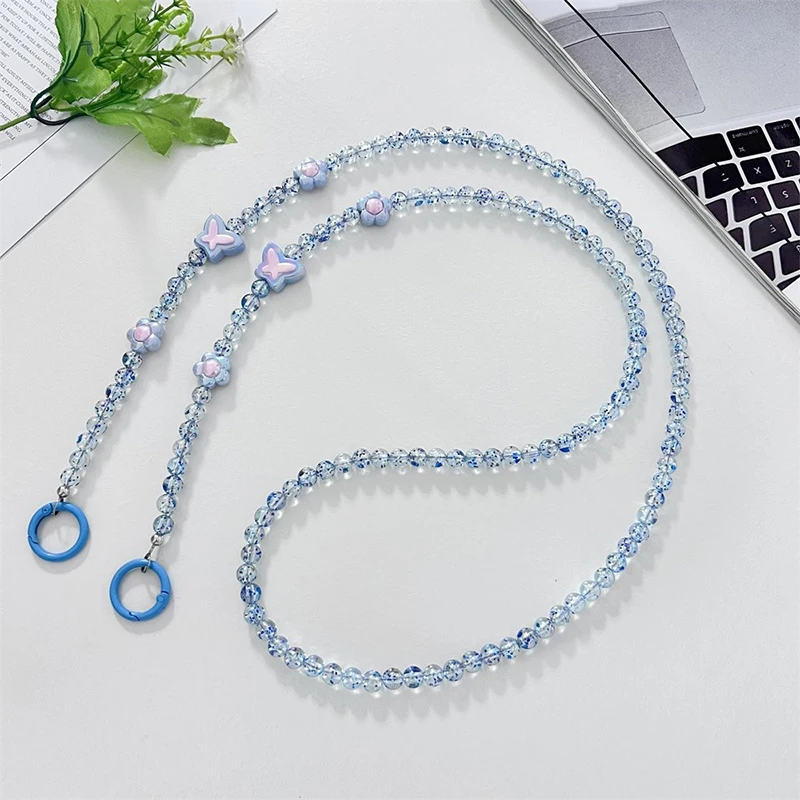 Comprar Bandolera larga con cuentas de cristal para teléfono móvil, cadena colgante, cordón para funda de teléfono, cuerda antipérdida con Clip, colgantes para bolsa para Iphone