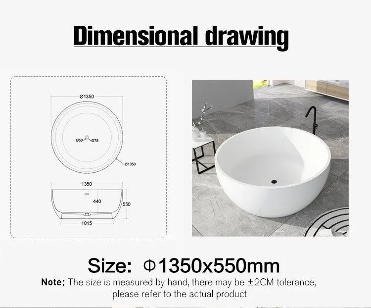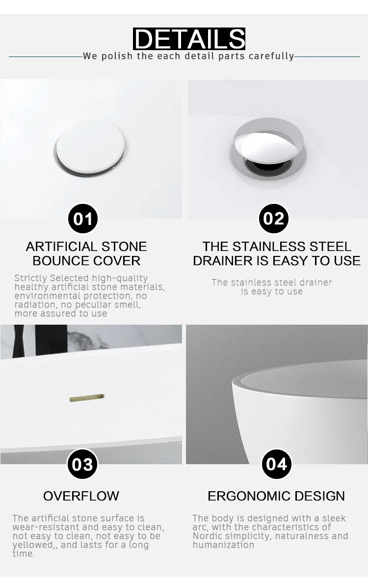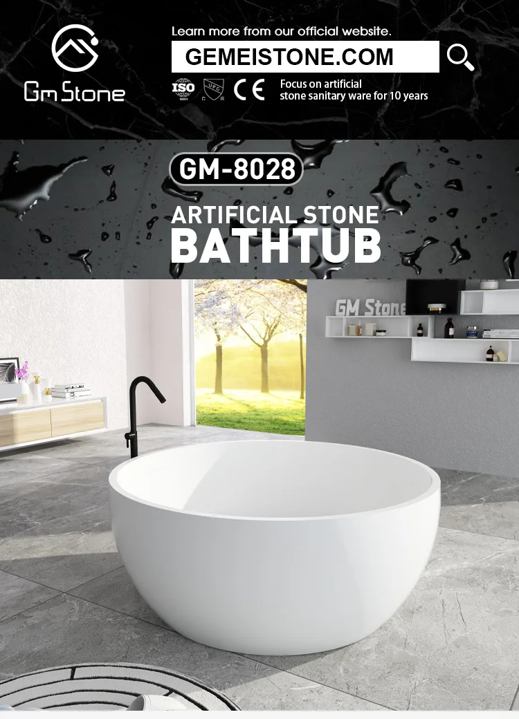 Bañera de piedra artificial independiente de piedra de resina de superficie sólida