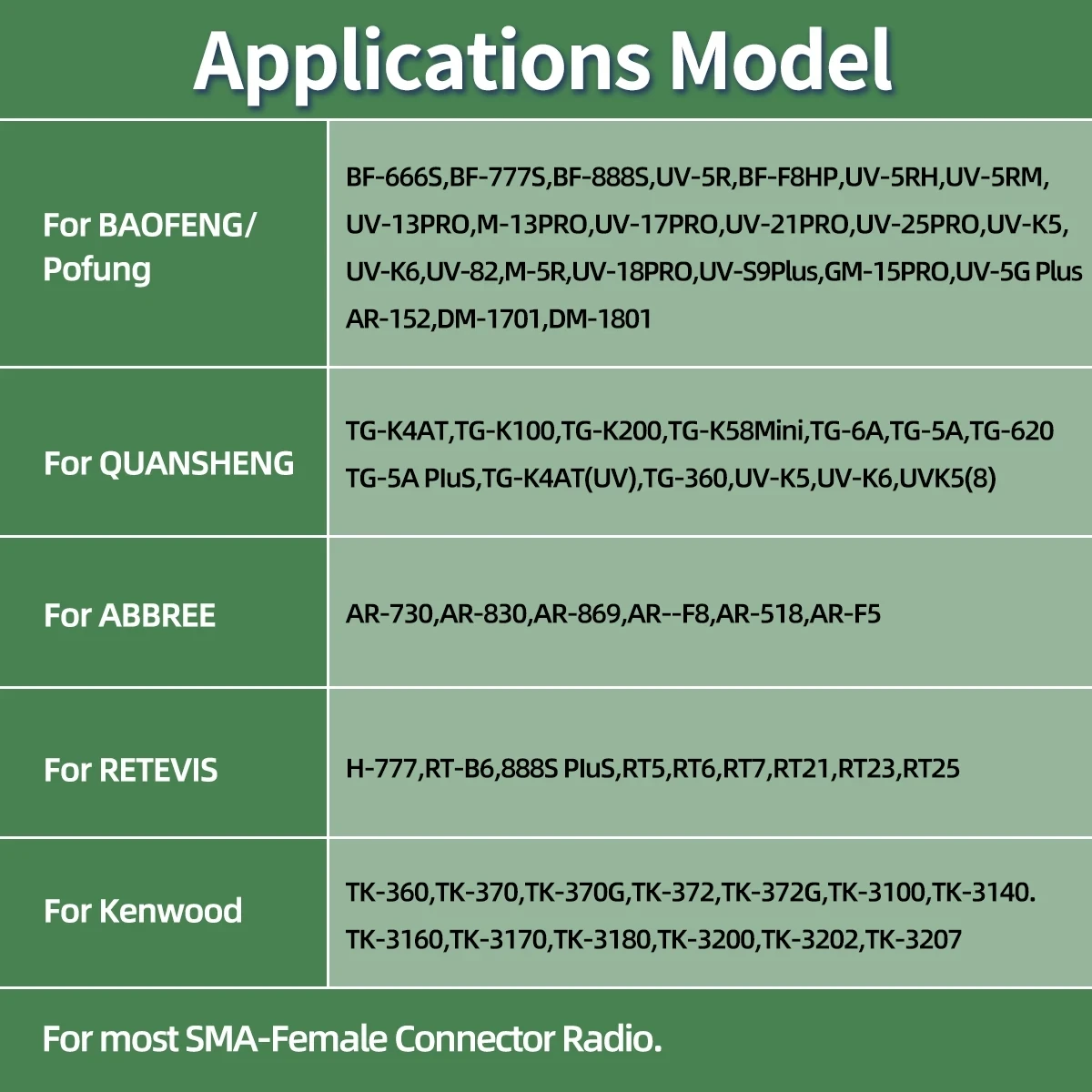 BF-666S,BF-777S,BF-888S,UV-5R,BF-F8HP,UV-5RH,UV-5RM,UV-13PRO,M-13PRO,UV-17PRO,UV-21PRO,UV-25PRO,UV-K5,UV-K6,UV-82,M-5R,UV-18PRO,UV-S9Plus,GM-15PRO,UV-5G Plus,AR-152,DM-1701,DM-1801