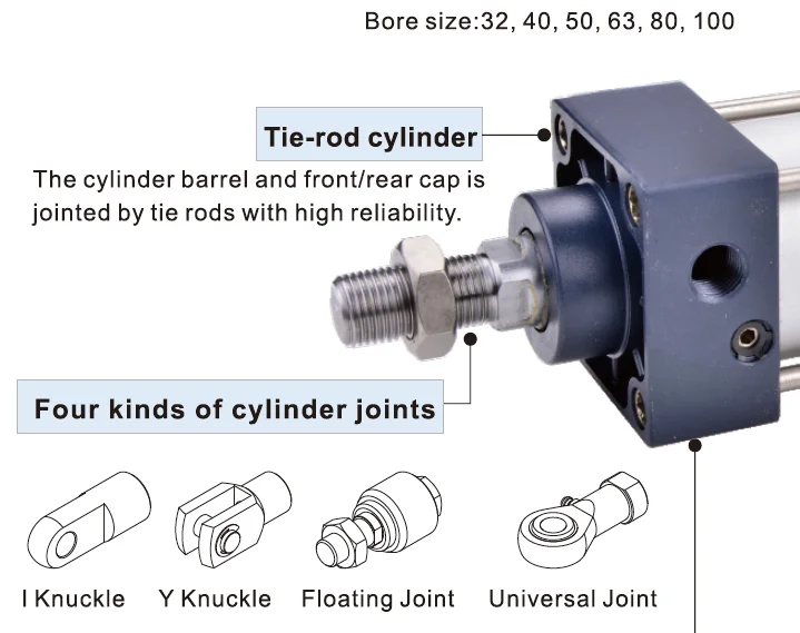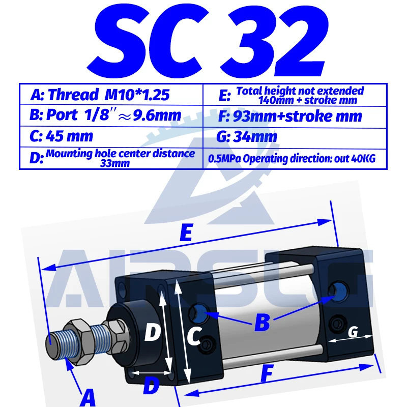 Barra de amarre de cilindro estándar tipo AIRTAC SC40, cilindro neumático de aire de doble capa, diámetro de 40mm, 25-300mm, SC40X25, SC40X100