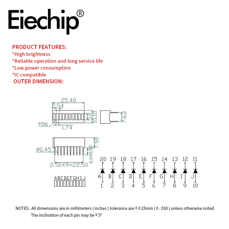 1. Nombre del producto: barra de luz de 10 segmentos CL10103BYR