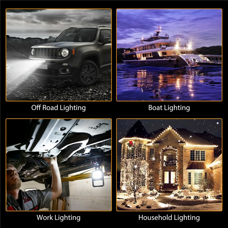 [Amplia aplicación]-Adecuado para varios todoterreno/Jeep/SUV/ATV/UTV/camión/barco con DC 9V-30V. La Barra de luces será perfecta para ser utilizada como luces todoterreno, luces de trabajo, luces antiniebla, luces de conducción, etc. Una buena opción para viajes, transporte de larga distancia e iluminación de patios.