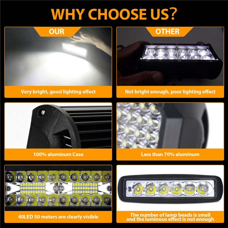 Comprar Barra de luz de 13200LM 40LED, luz antiniebla todoterreno impermeable, barra de luz de conducción y trabajo de 120W, combo de vigas de inundación para UTV ATV camión barco
