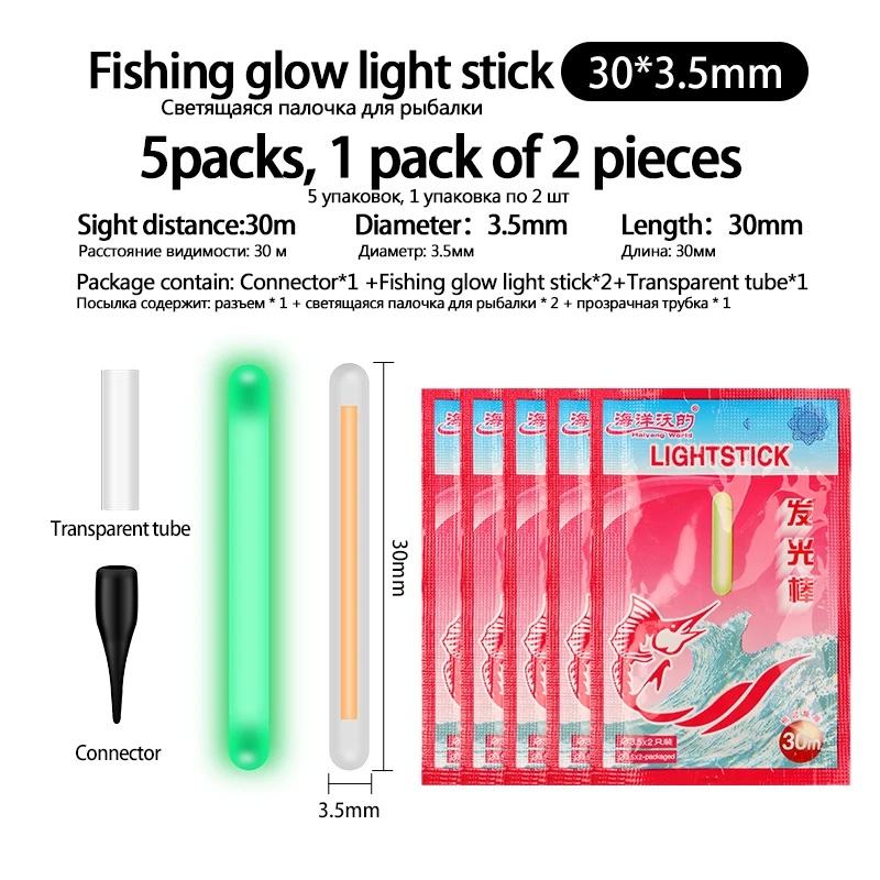 Varilla de luz fluorescente de 10 + 5 tubos blandos + 5 conectores de diferentes tamaños para elegir la herramienta de pesca luminosa de pesca nocturna