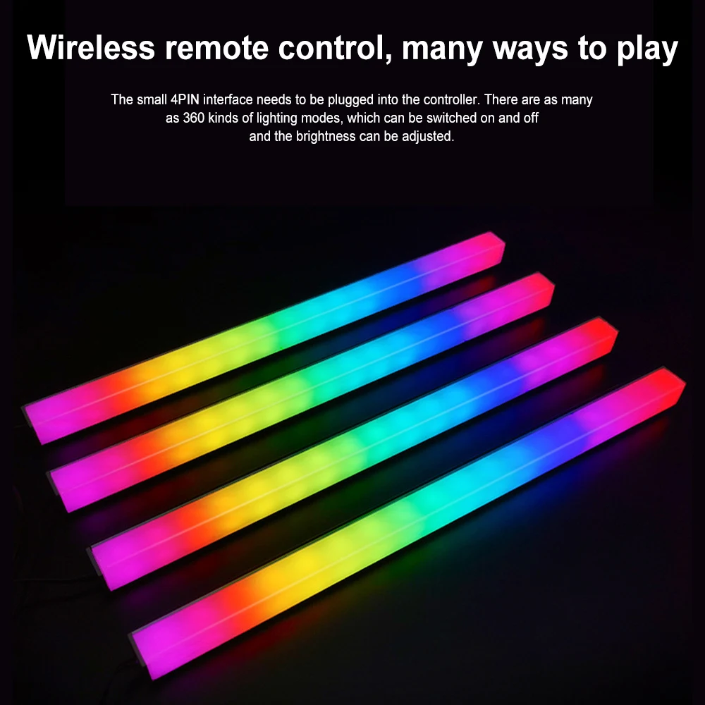 5. Juego de control remoto, control remoto inalámbrico de muchas maneras, la pequeña interfaz de 4 pines debe conectarse al controlador, hasta 360 tipos de modos de iluminación, interruptores ajustables, brillo, etc., se puede sincronizar con el chasis, el ventilador, el radiador, etc. para cambiar de color, Control Remoto. Toda la máquina cambia de color sincrónicamente.