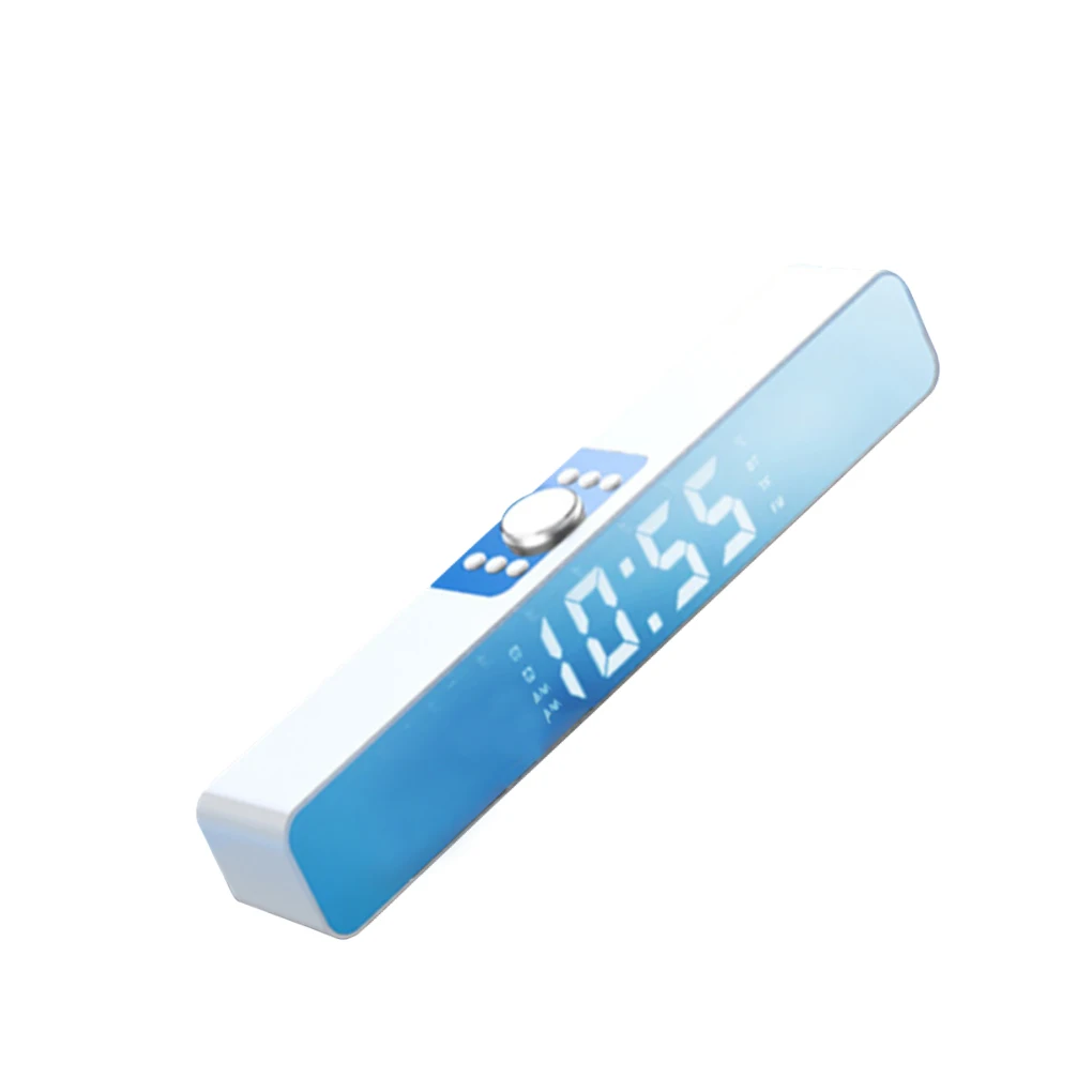 Diseño especial: esta barra de sonido inalámbrica LED tiene alarmas duales y función de repetición y tiene una pantalla de espejo LED para mostrar la hora, la alarma y la temperatura.
