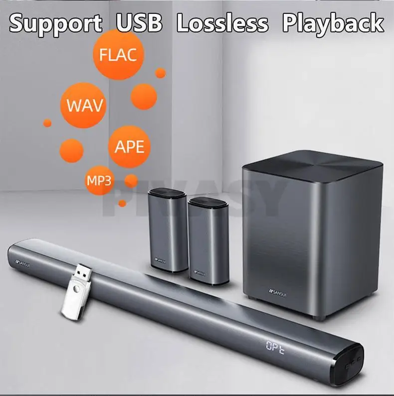 8 Inch Hifi 100W Power Sound Bar Home Theater Audio System Echo Wall Subwoofer Speakers 5.1 TV PC Home Set HDMI Fiber Coaxial