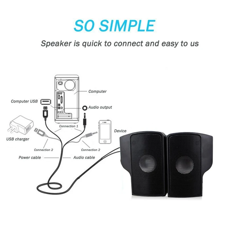 Dos altavoces estéreo pueden alcanzar un efecto de sonido equilibrado, puro y estéreo, y unirse para pararse en el escritorio