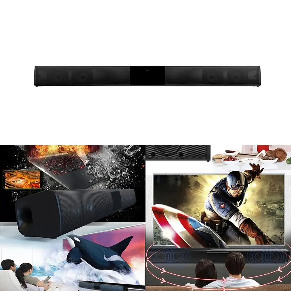 Amplia compatibilidad: La adopción de la tecnología de transmisión inalámbrica, la barra de sonido posee una alta transmisión inalámbrica eficaz y estable de fuerte inmunidad a las interferencias.