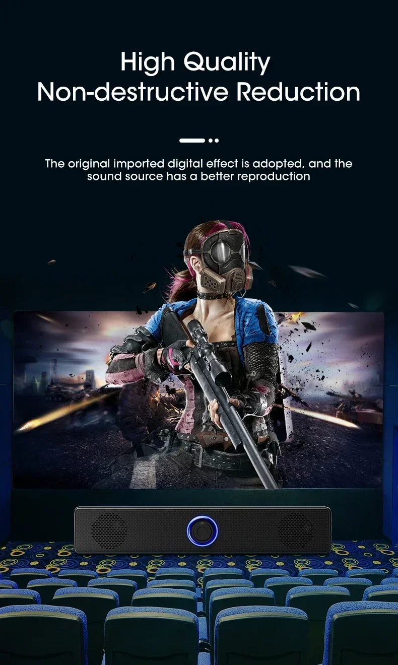 • Alimentado por USB:Esta barra de sonido está alimentada por USB, lo que garantiza un funcionamiento fácil y conveniente sin necesidad de cableado ni fuentes de alimentación adicionales.