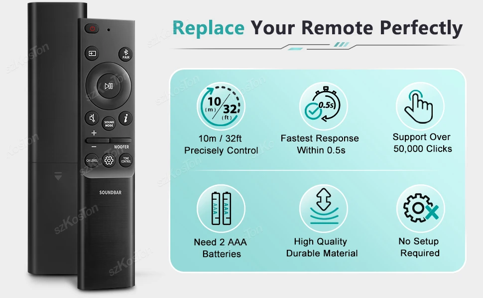 Reemplazo perfecto para el control remoto de mi barra de sonido Samsung. Esto me permitió poner la barra de sonido en modo ID SET para poder emparejar los parlantes traseros con la barra de sonido. Muy satisfecho con mi compra.