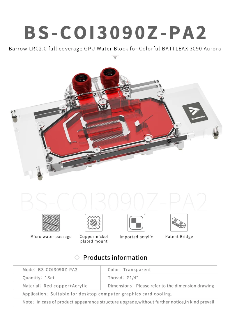Comprar Barrow 3090 3080 GPU bloque de agua para BATTLEAX 3090/3080, cubierta completa 5v ARGB GPU Cooler, BS-COI3090Z-PA2