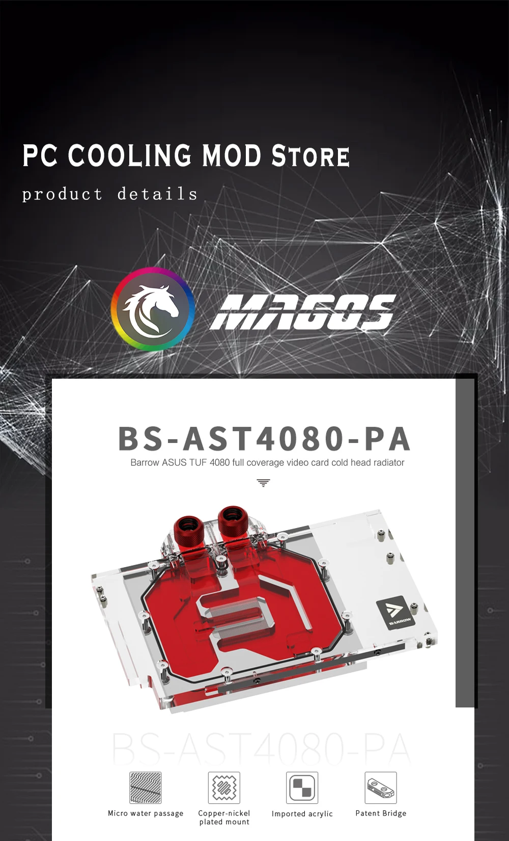 Comprar Barrow 4080 GPU bloque de agua para ASUS TUF/ROG STRIX RTX4080 O16G/16G enfriador de tarjeta de vídeo para juegos con placa posterior, 5V 3P BS-AST4080-PA