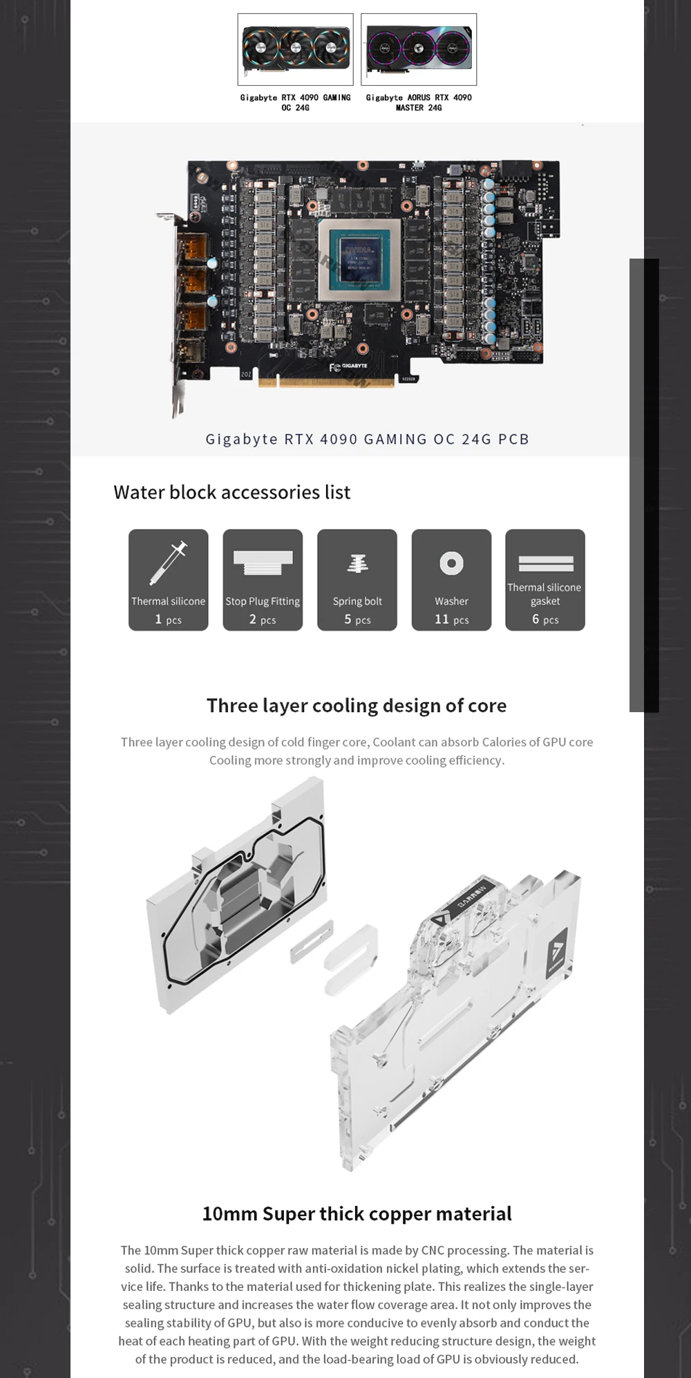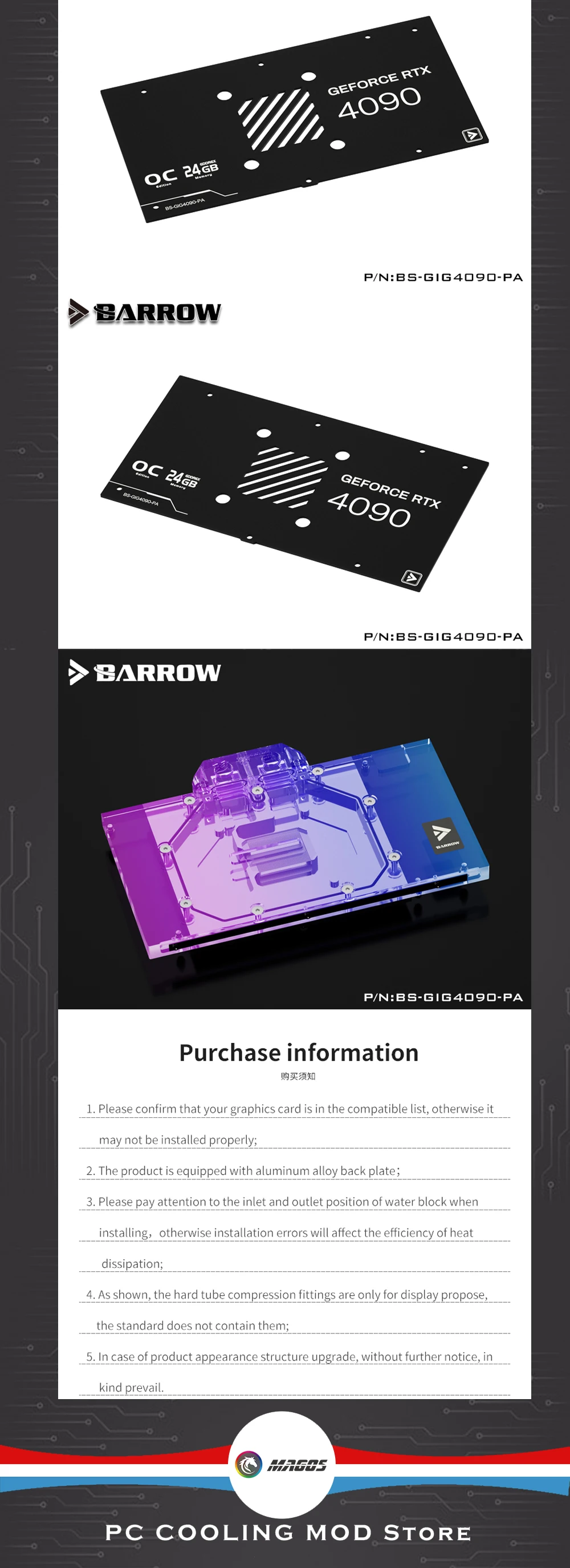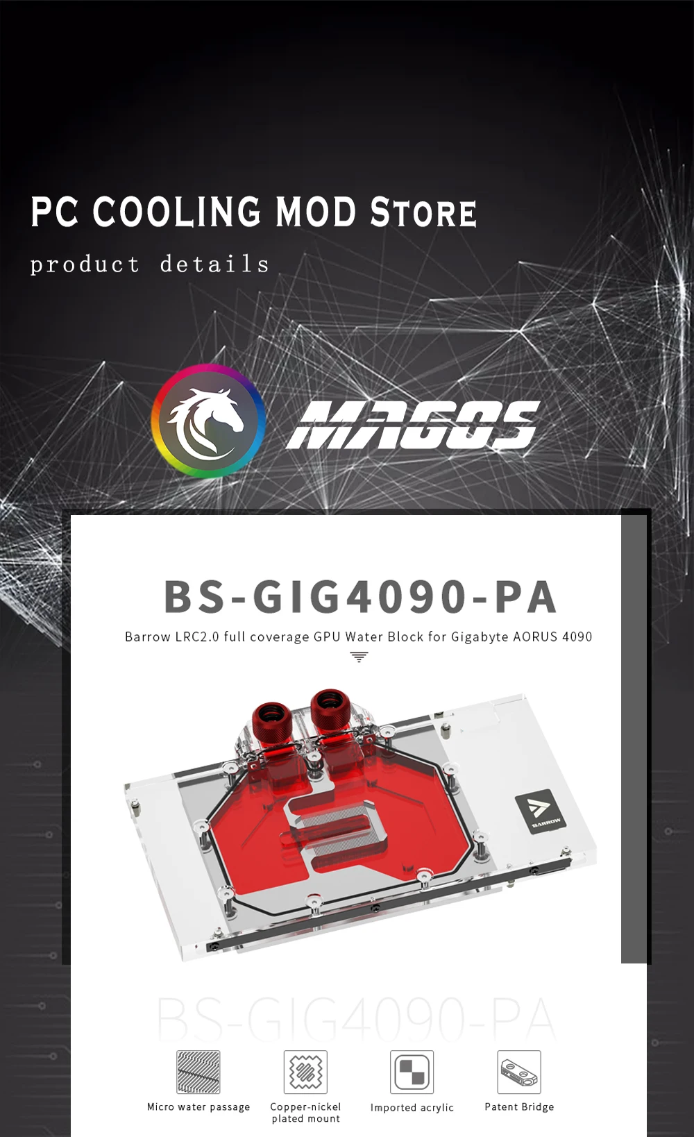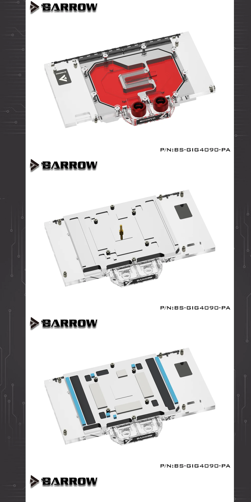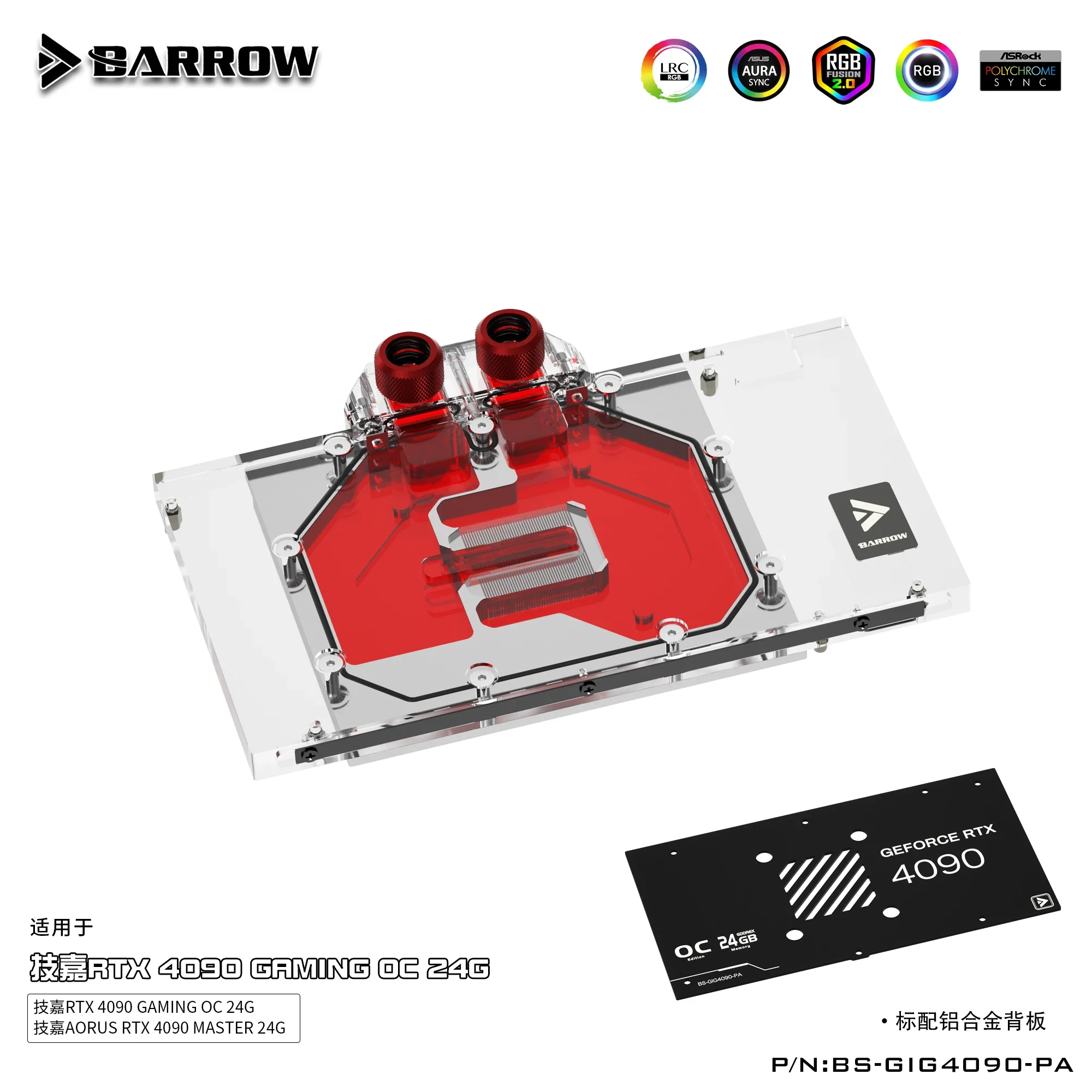 Comprar Barrow 4090 GPU bloque de agua para Gigabyte RTX 4090 GAMING OC 24G, tarjeta MASTER AORUS RTX 4090, con enfriador de placa posterior, BS-GIG4090-PA