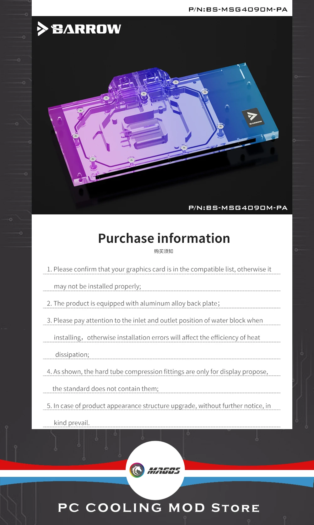 Comprar Barrow 4090 GPU bloque de agua para MSI RTX 4090 GAMING X TRIO 24G/sofim X 24G enfriador de tarjetas con soporte de placa trasera BS-MSG4090M-PA