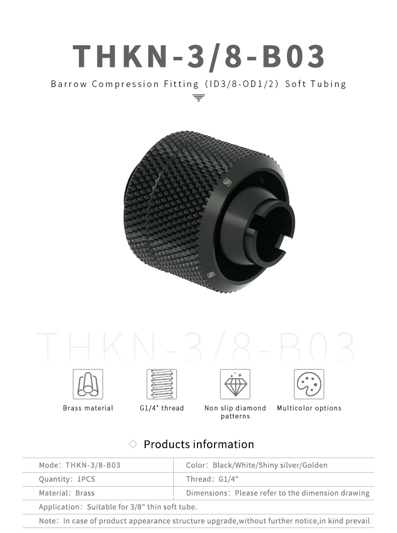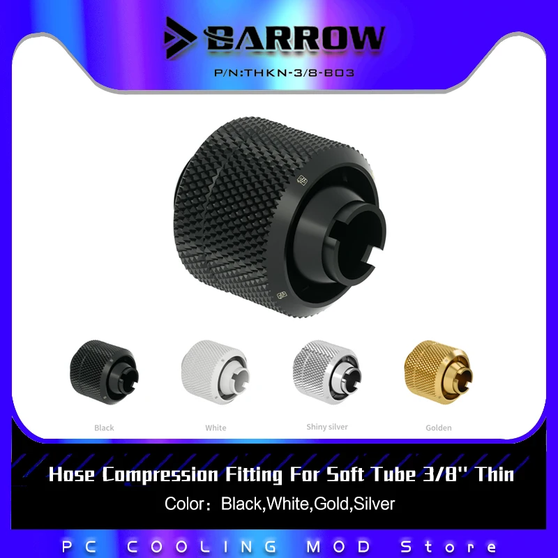 Barrow-accesorio de manguera fina de 3/8 pulgadas, utilizado para tubo de 9,5x12,7mm, Conector de tubería suave apretado a mano, dorado, Blanco, Negro, THKN-3/8-B03