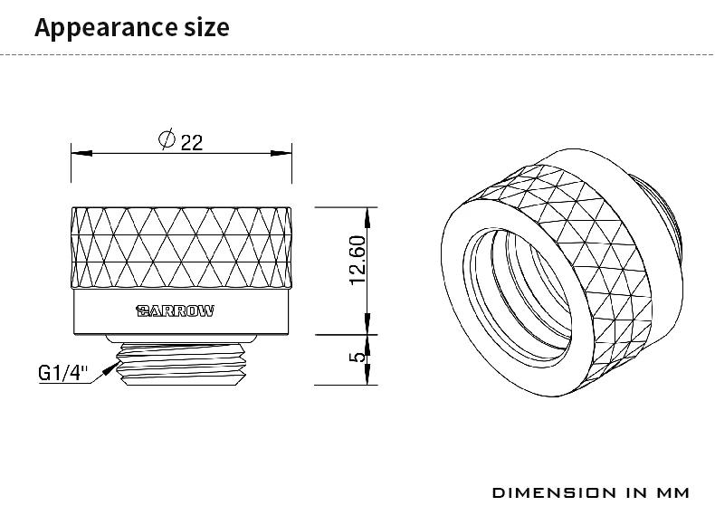BARROW-Accesorios de mano de tubo duro, adaptador de ajuste rápido de tubos rígidos, rosca de diamante G1/4 "para refrigeración por agua, OD14mm, 12 piezas
