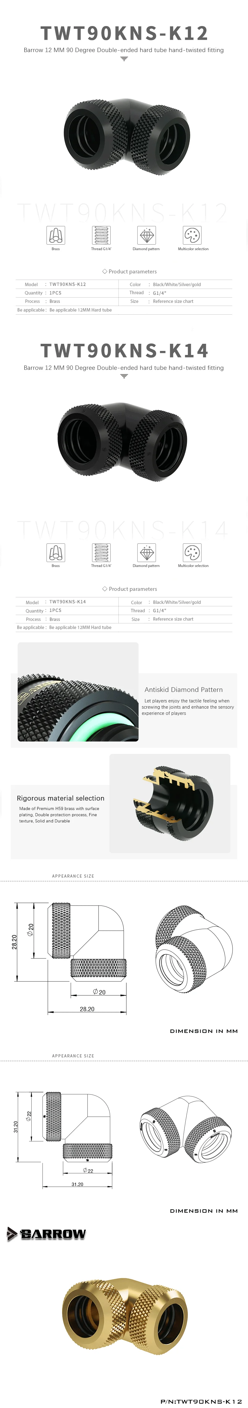 Barrow TWT90KNS-K12/TWT90KNS-K14 90 Graden Harde Buis fittinga, g1/4 adaptadores Voor OD12mm/14Mm Harde buzen
