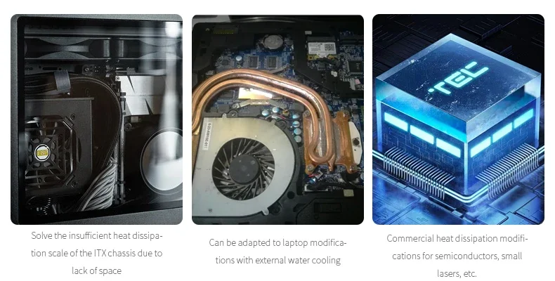 2. Adecuado para la modificación de disipación de calor refrigerada por agua de pequeños equipos domésticos y comerciales como chasis X, portátiles, ordenadores de escritorio, semiconductores, máquinas láser, etc.